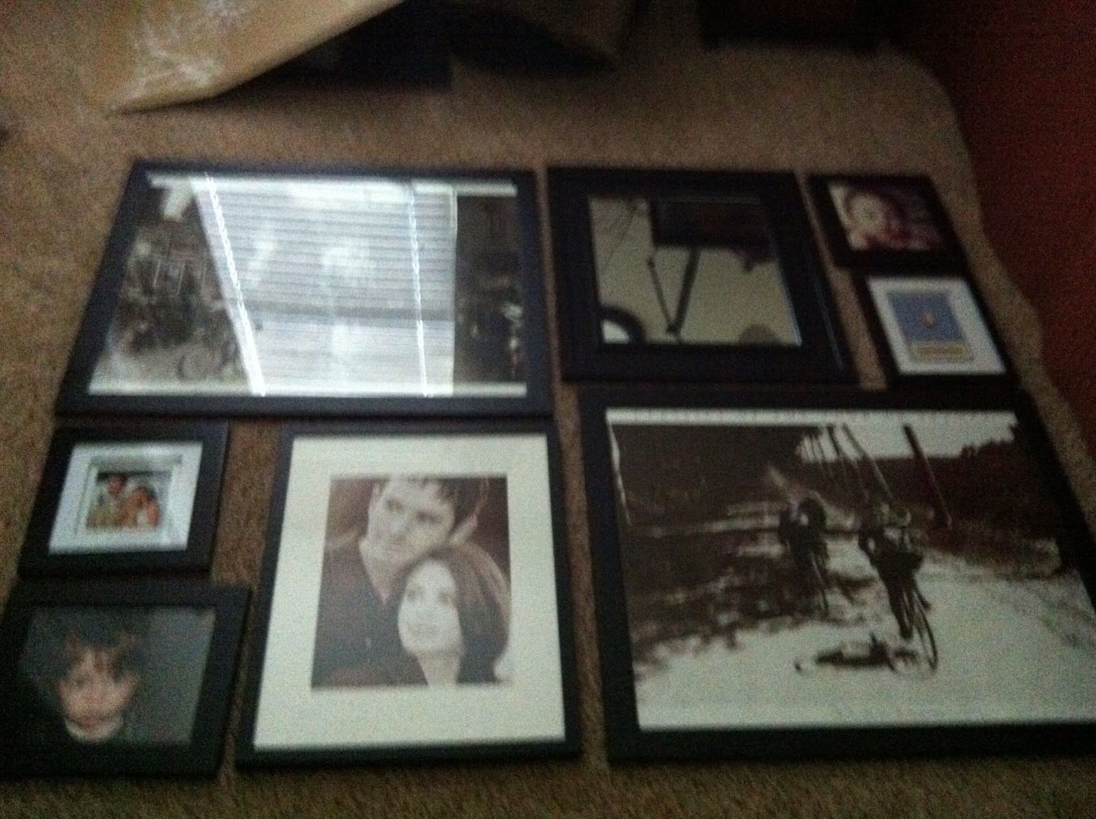 I started by laying out the frames on the floor and playing with them until I was happy with the arrangement.