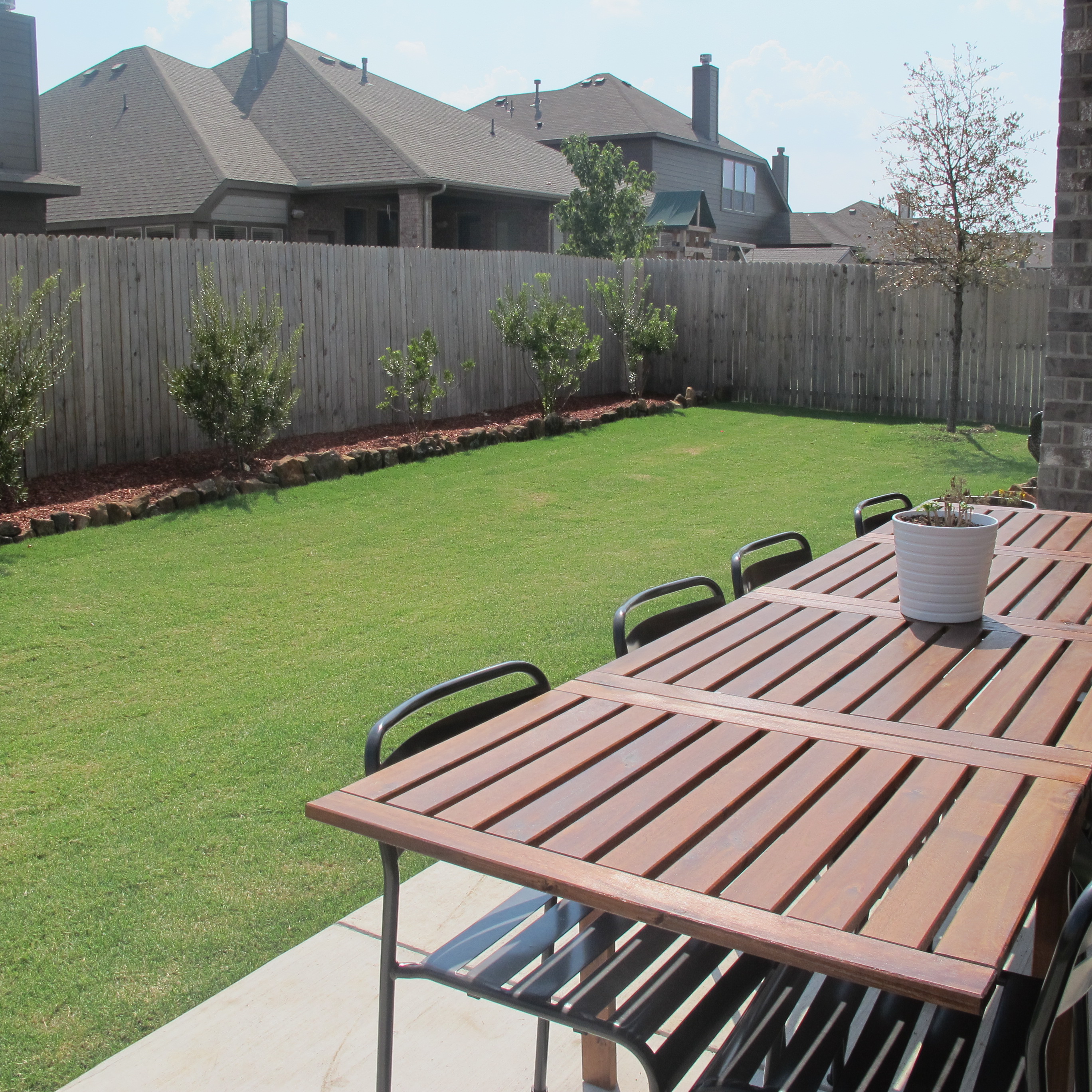 …the table and chairs are from Ikea. We chose to mix and match rather than buying a complete set. I treated the table with Teak Oil to help protect it from the Texas heat and sun, and so far, it’s been faring well.