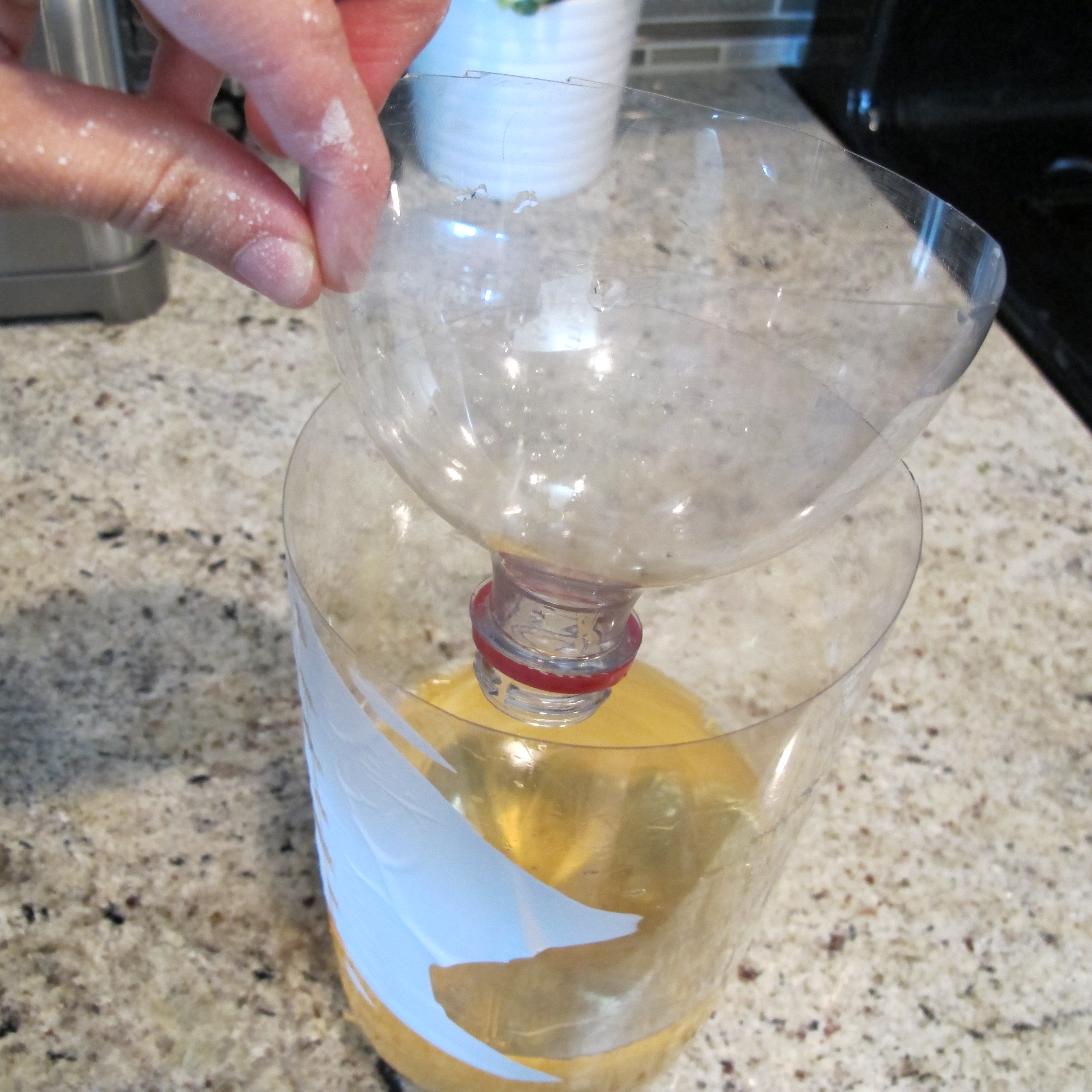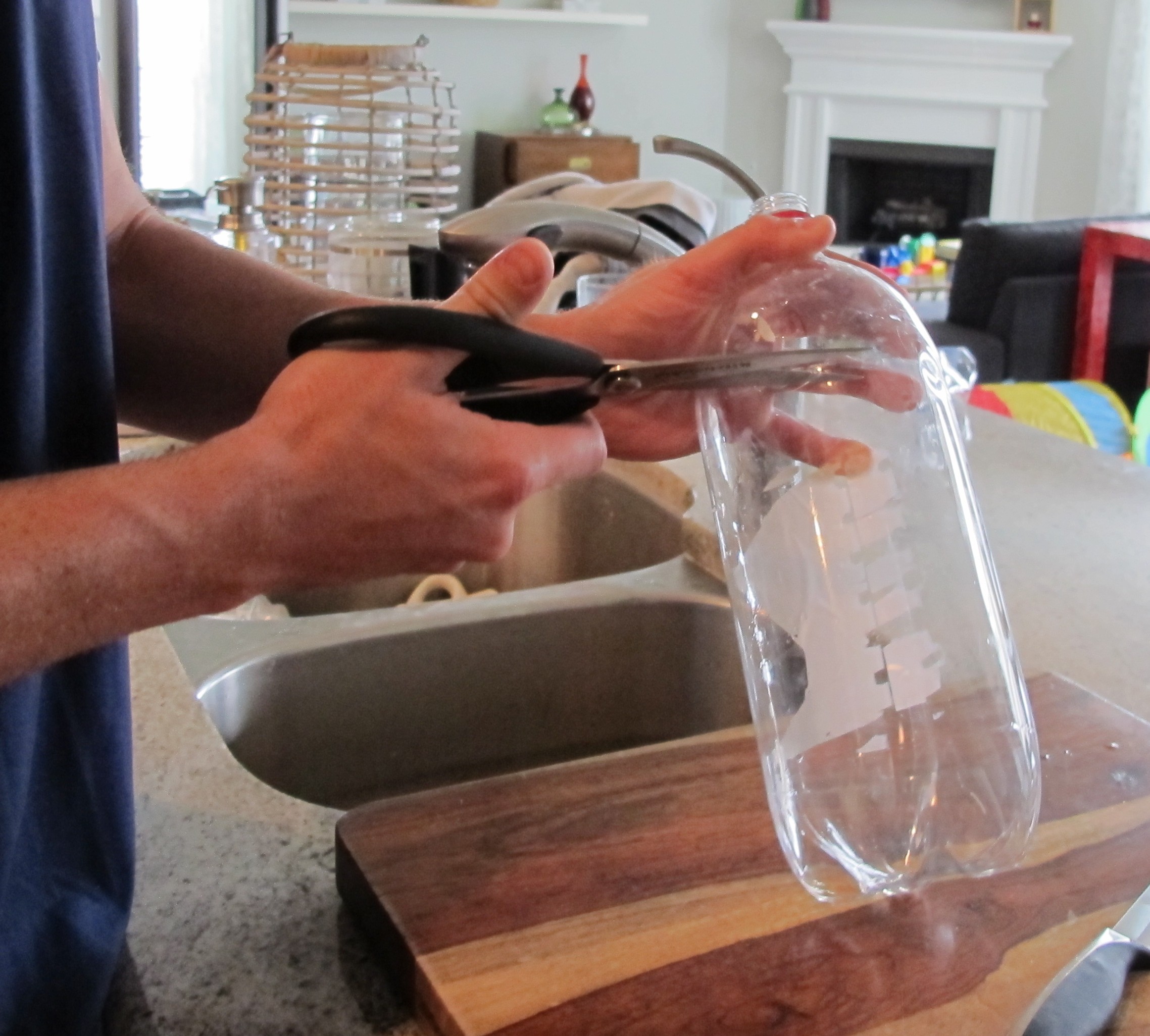 By this point, we’d pretty much had it, so Joey went online and found this tutorial. Here’s what he did… He started by emptying a 2-liter soda bottle that had long since gone flat. Then, after rinsing it out, he simply cut the top off with scissors.