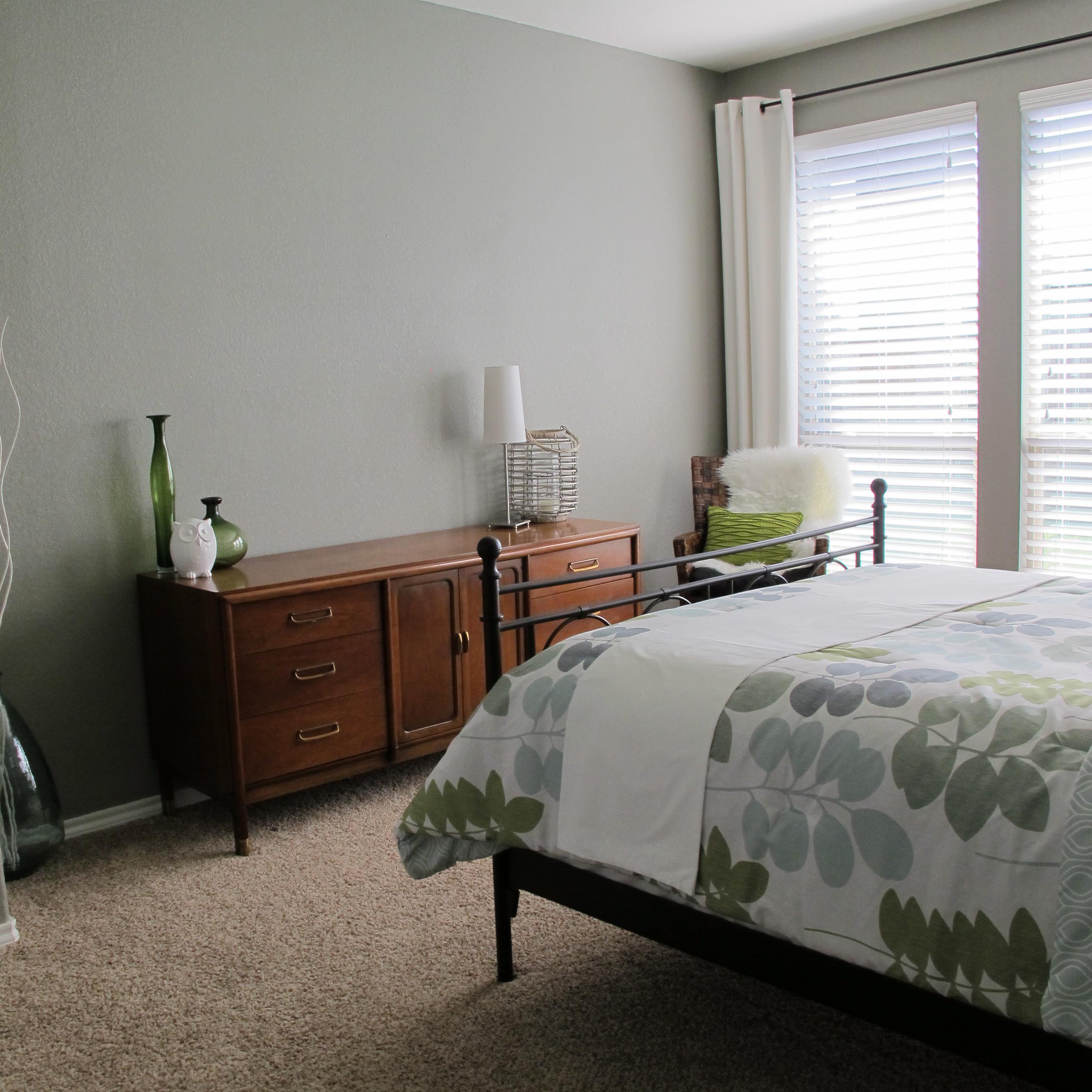 I’m in love. I feel like the dresser gives the room a mid-century-hotel vibe. It feels swanky, which is a new and very welcome feeling. I think our master bedroom should feel swanky. I still need to play around with the accessories (a lot). It’s feeling a a bit matchy and scattered right now, but it’ll get there. Then, I’ve gotta find/make some sort of large-scale artwork to go above the dresser (and possibly change out the chair for something sleeker), but I just can’t get over how much more spacious and open this side of the room feels already.