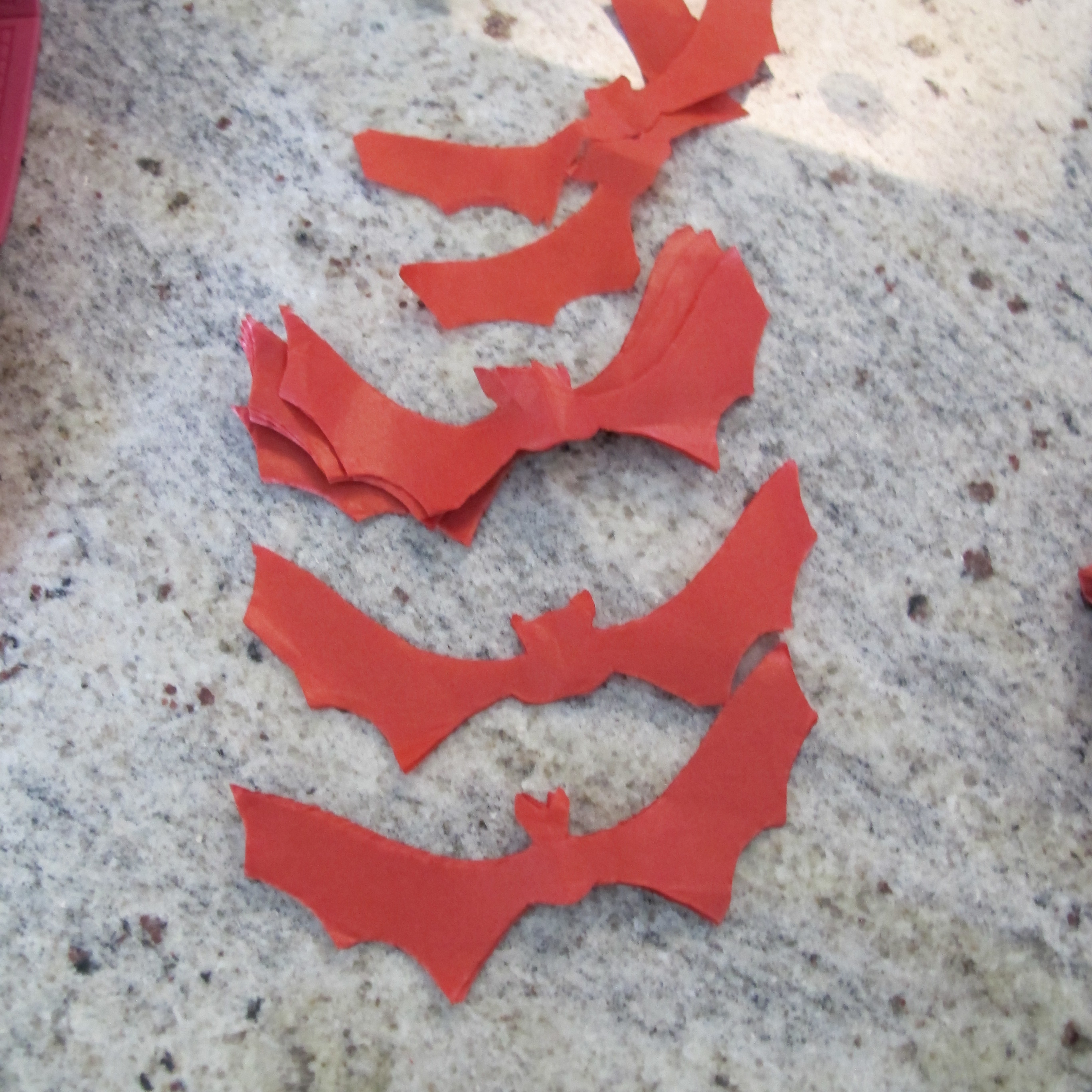 I did larger bats in green and smaller ones in red. Then, I cut out circles and triangles with the other colors.