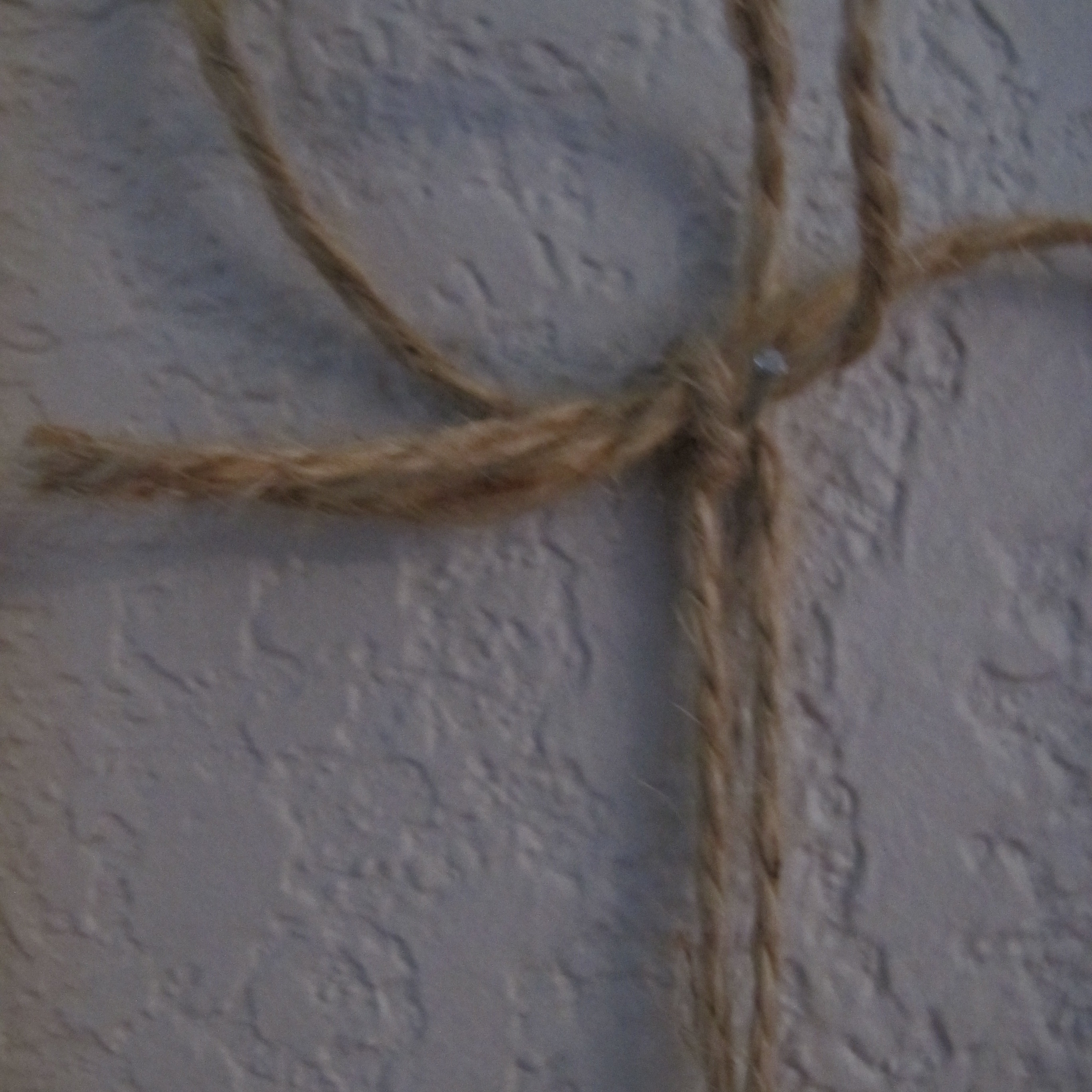And hung it with a finishing nail on the wall between the two existing pictures. I left the twine long so that I could adjust the length if needed once hung.