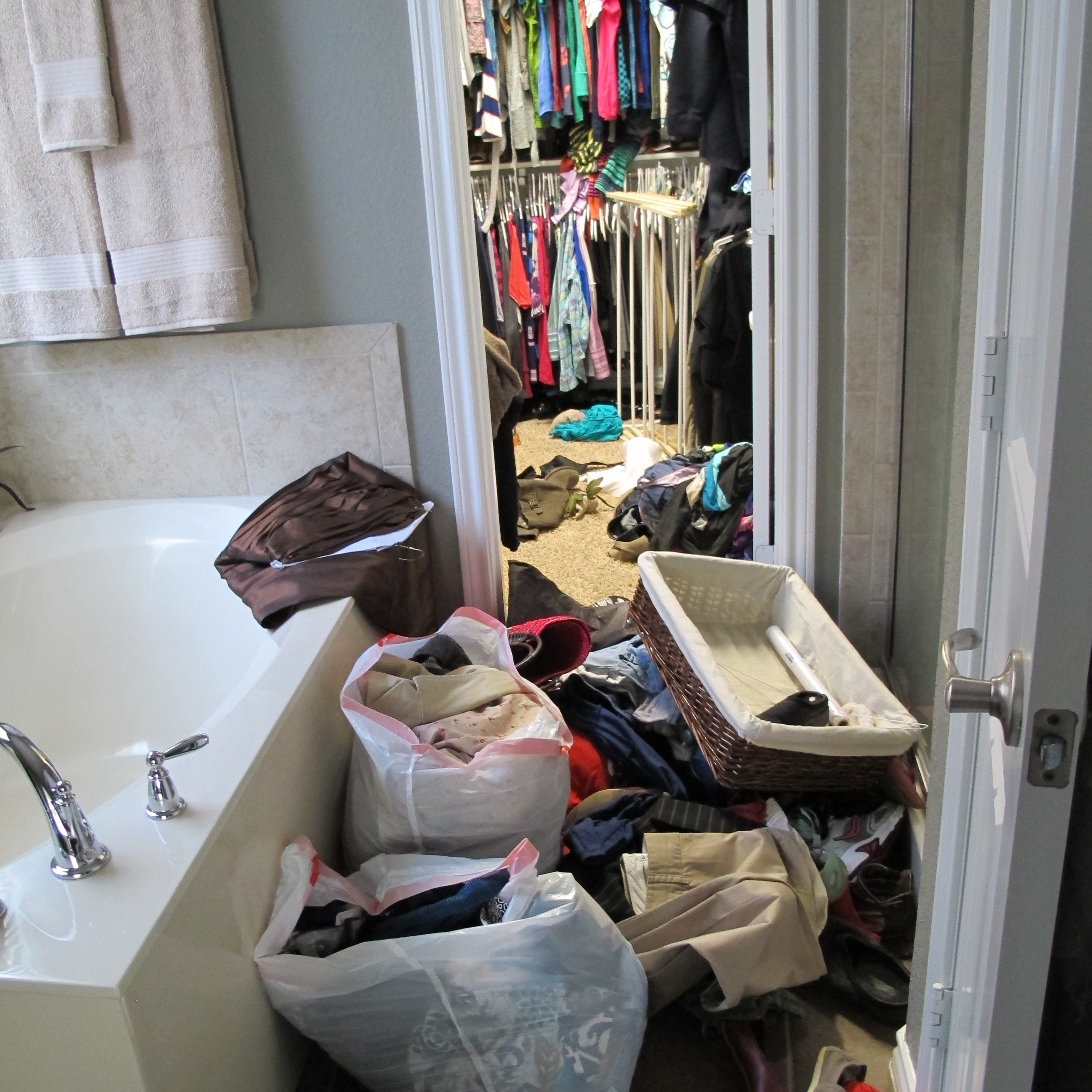 And I’ll warn… This post isn’t pretty. It’s mostly an admission of my closet disorganization (pun intended). So, look away if you must. I’ll understand.