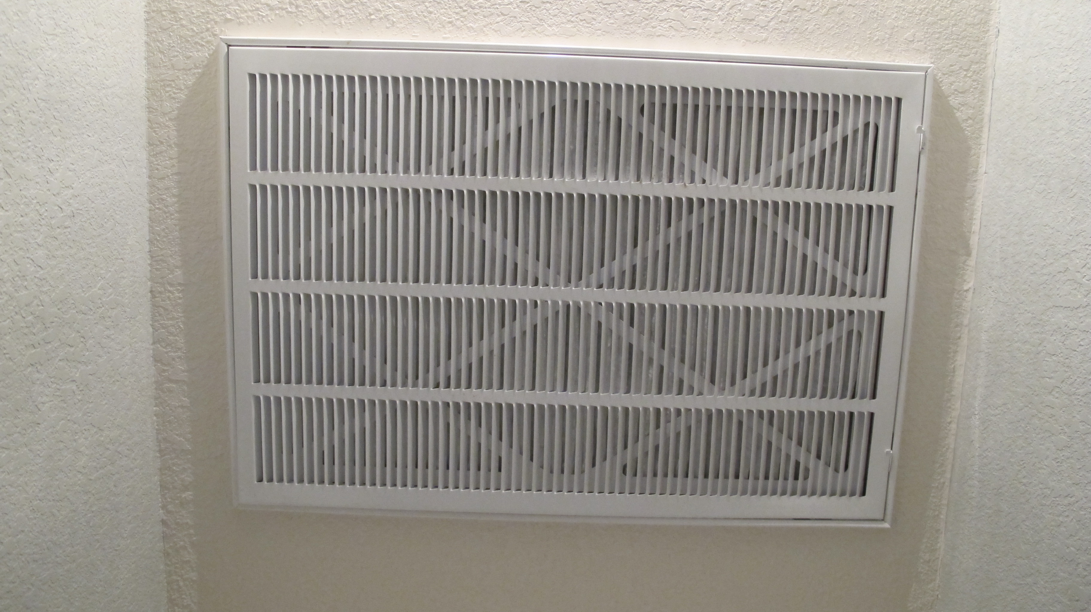 The arrow should point in the direction of air flow. So, in my case it would point up, away from the vent cover. I climbed back on my ladder, popped the filter up into the vent hole and replaced the cover.