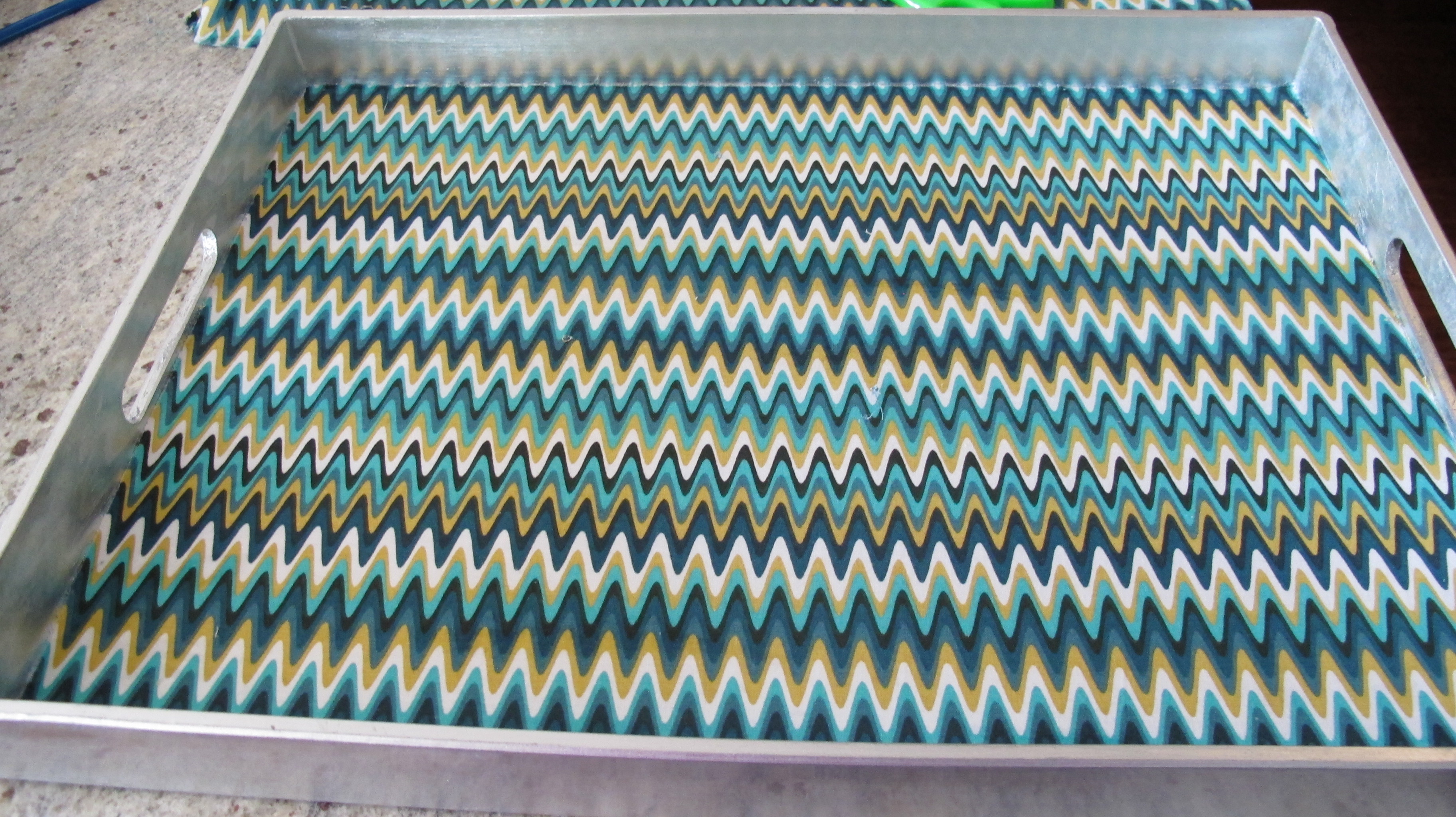 I just love it. It really gives Drex a bit of pizazz. Plus, if I ever tire of the print, I can simply Mod Podge something else over it or spray-paint the entire tray a bold color. Nothing is forever when spray-paint’s in the house, my friends.