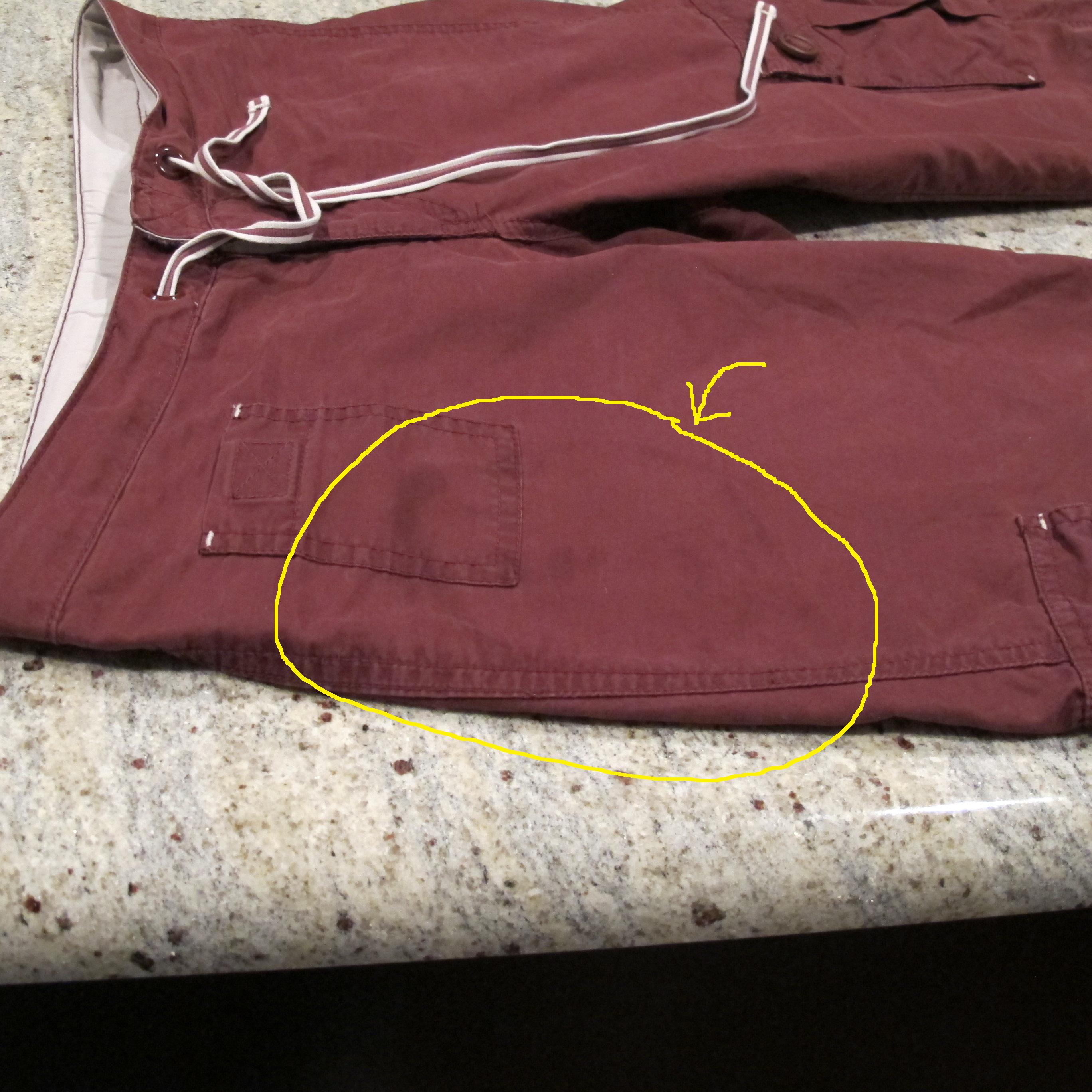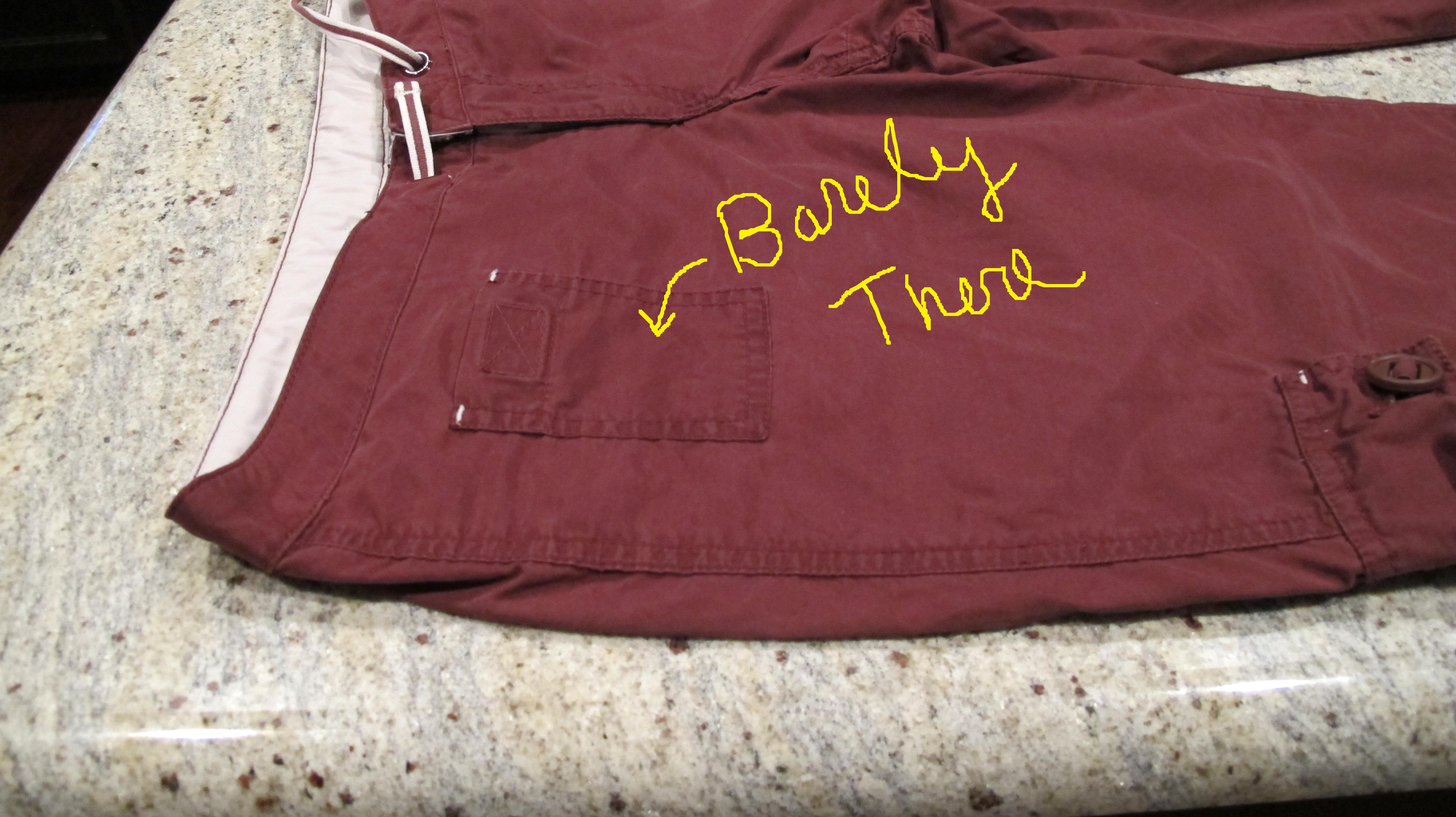 I know.  It’s kind of boob-like.  I blame Miss Butter and her topless ways.   Anyways, after chalking-it-up, I washed the pants in cold water with an extra rinse, then allowed the pants to air-dry.  Which left this…