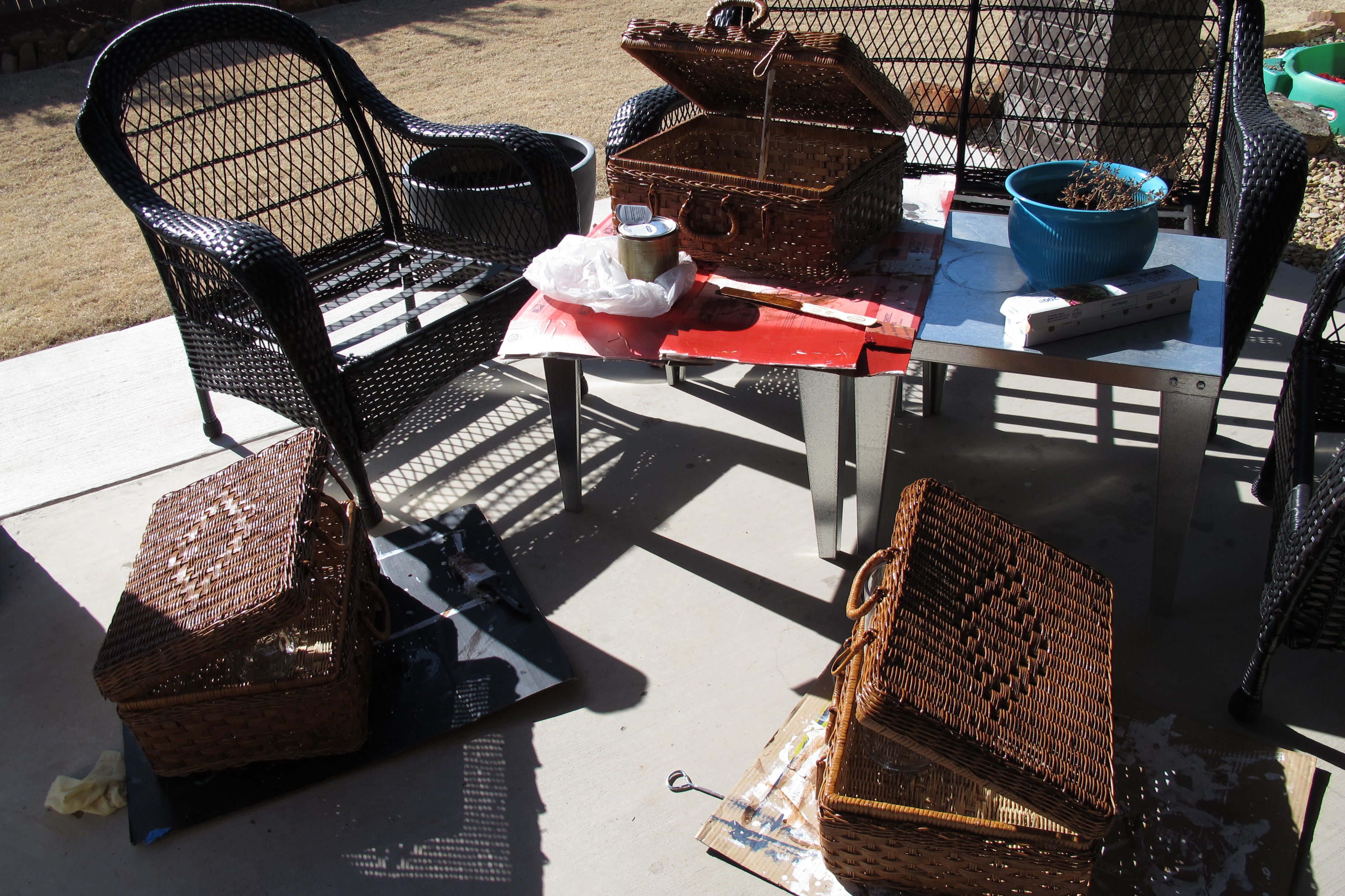 …And dunzo. Shortest tutorial ever, eh? It was that easy. I definitely recommend applying this stuff outside as it’s pretty fumey, but aside from that I have no other notes. It was straight forward and easy to use. I let the basketcases sit outside for a good day and then brought them in and put them to work. And here they are in action….