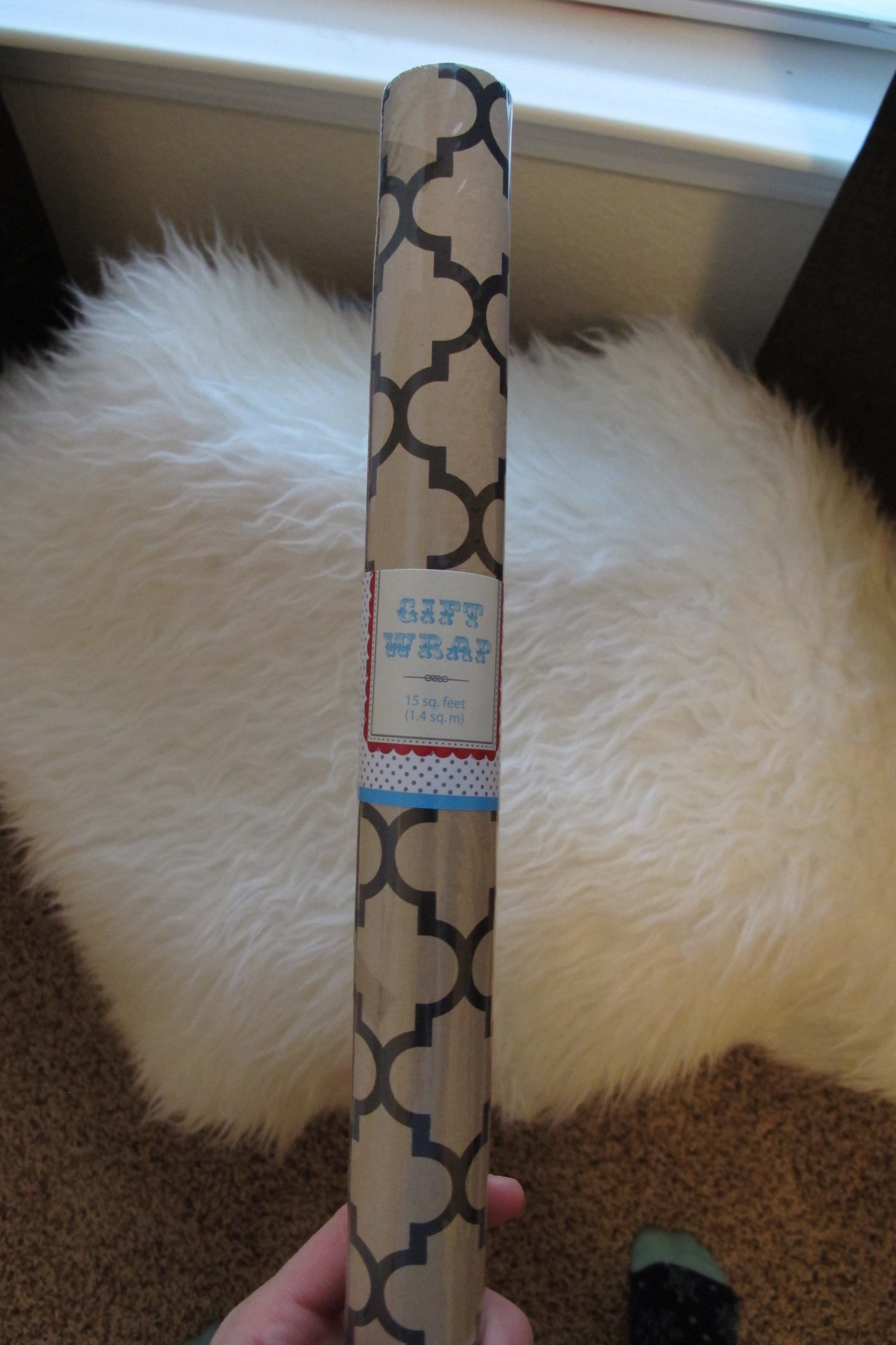Why, it’s a roll of wrapping paper that I found at the One Spot at Target for a buck. I simply attached it to the back of the doors with Scotch tape.