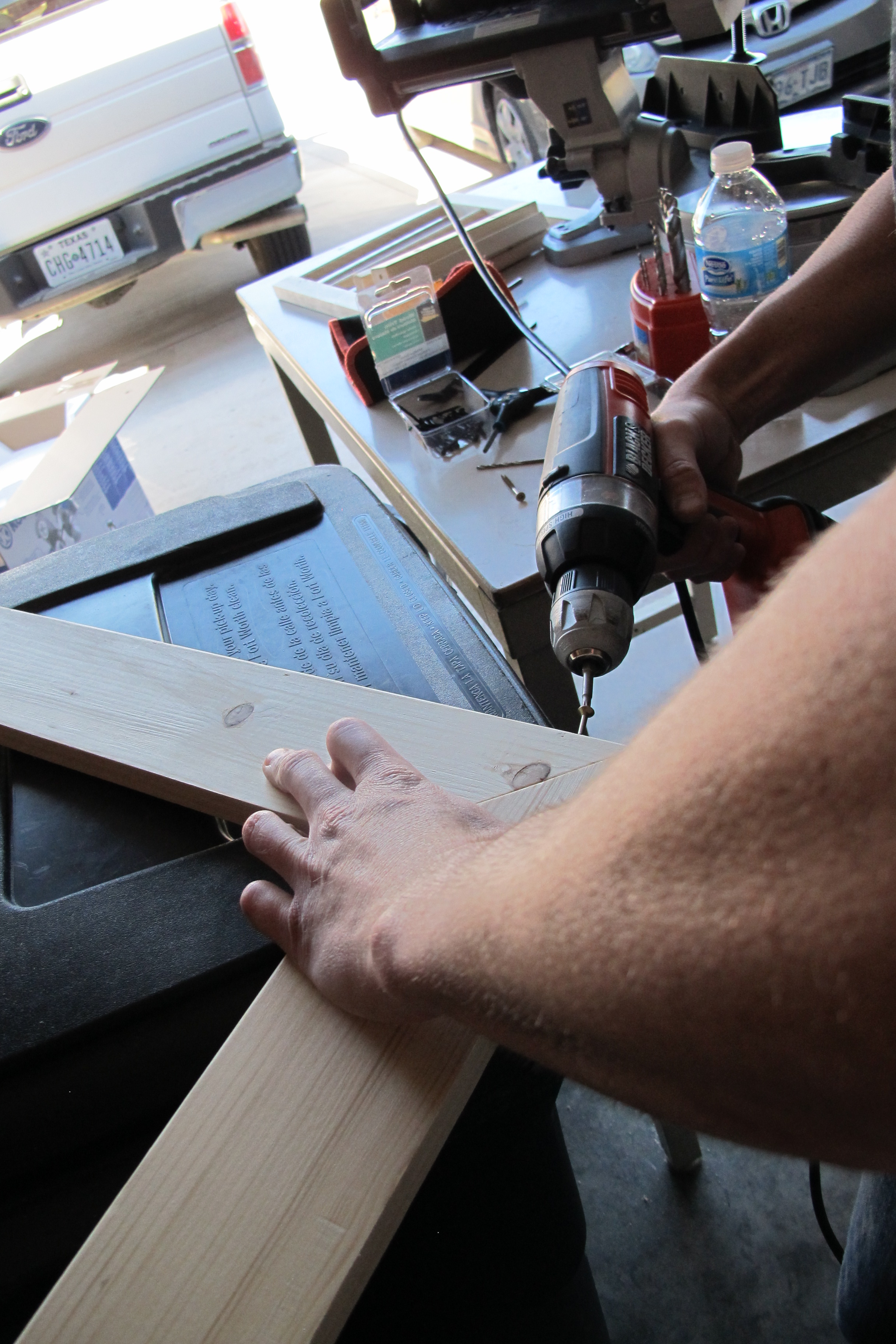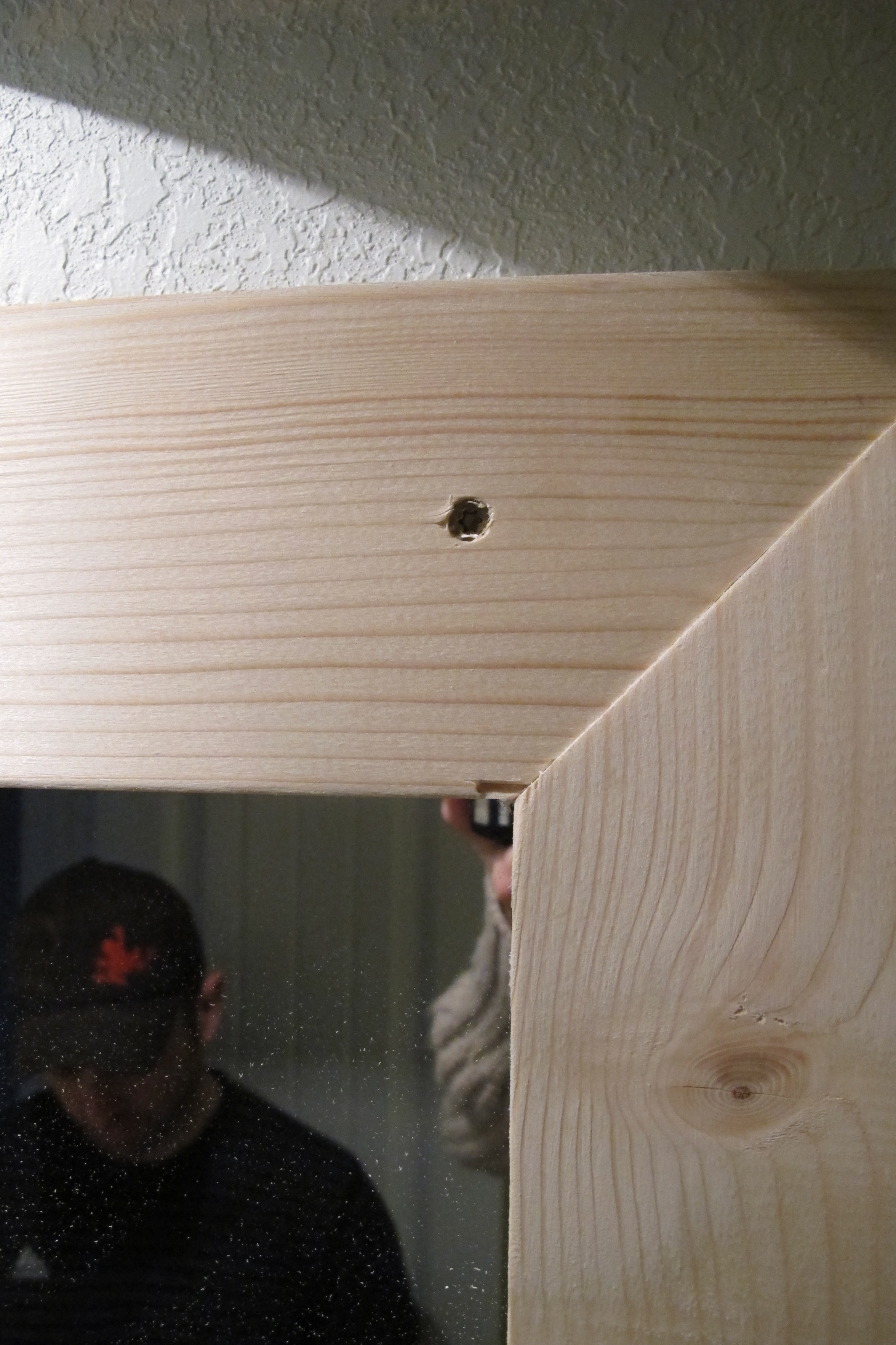Then, he screwed the edges of the 1″x4″s together to make a frame. He recessed the screw heads into the wood and only installed screws on the top and bottom edges to help camouflage them….