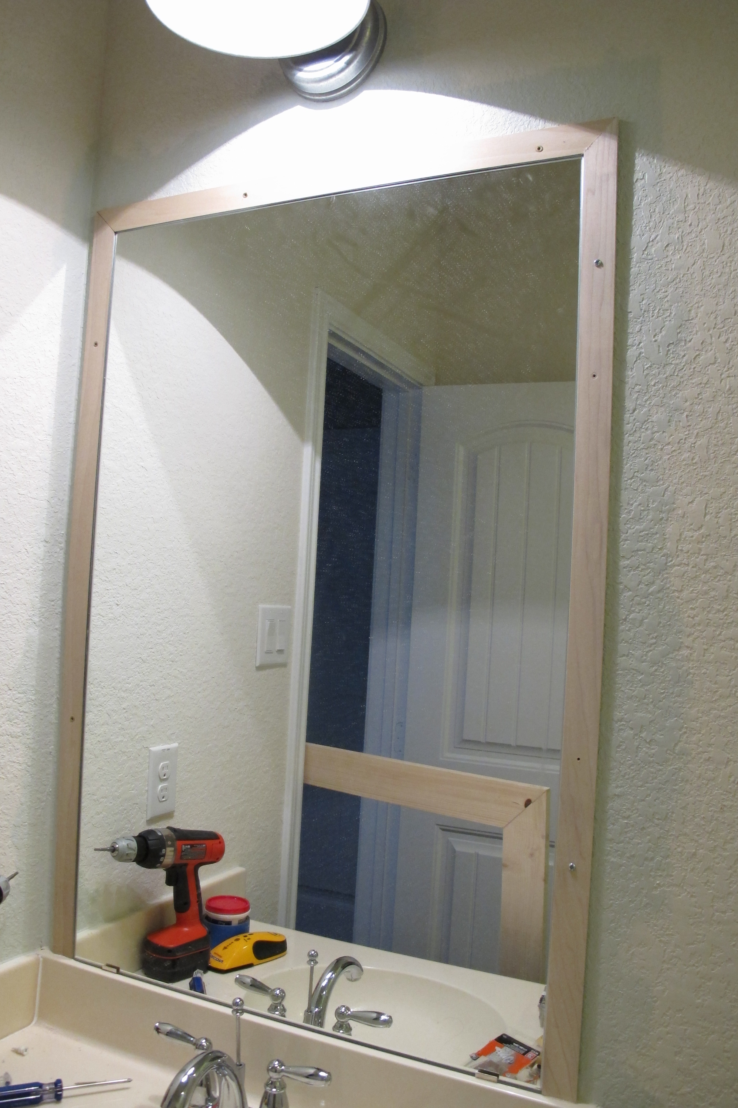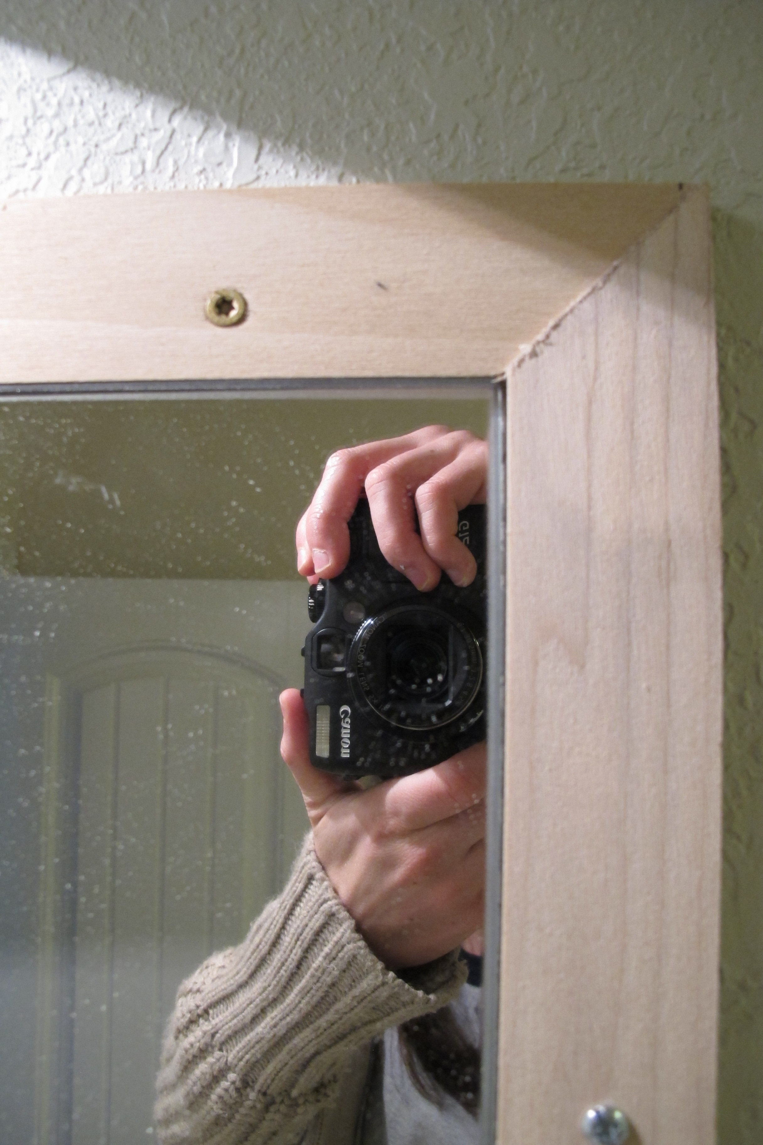 Then, he mounted the 1/4″x2″ sticks around the mirror using screws….