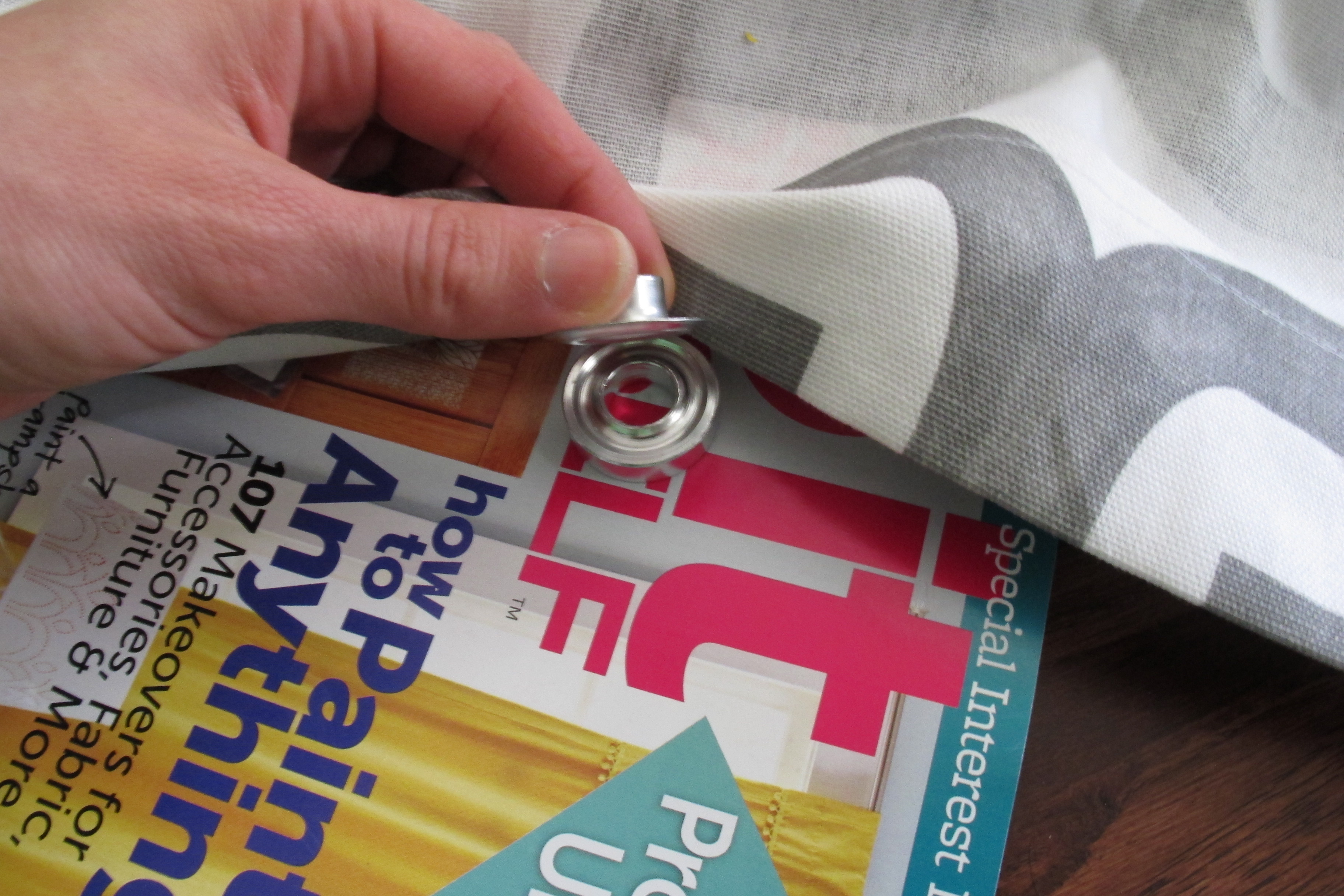 Next, came the grommets. I’d purchased two packs of these from Joanne with 40% off coupons so they came to about nine dollars for both packs…