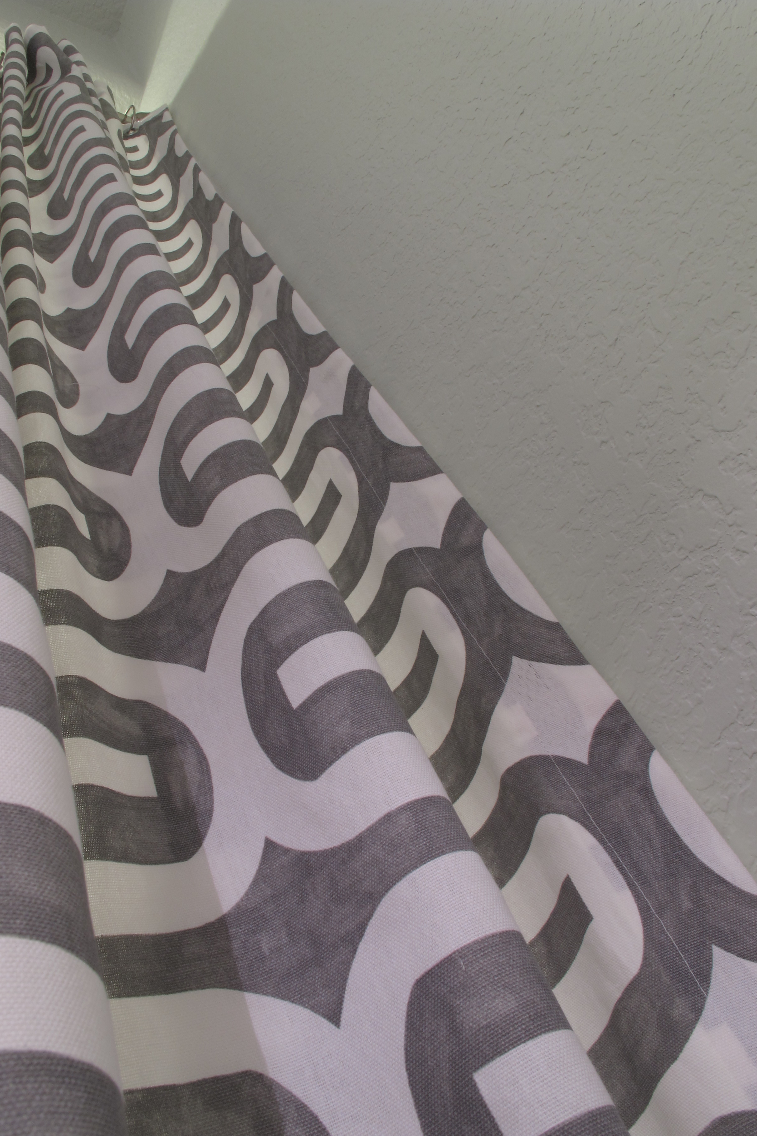 …Which is when we realized that we had forgotten to check that the pattern of our material was lined up between the two curtains. It was off just enough to be bothersome.   So, we removed one curtain.