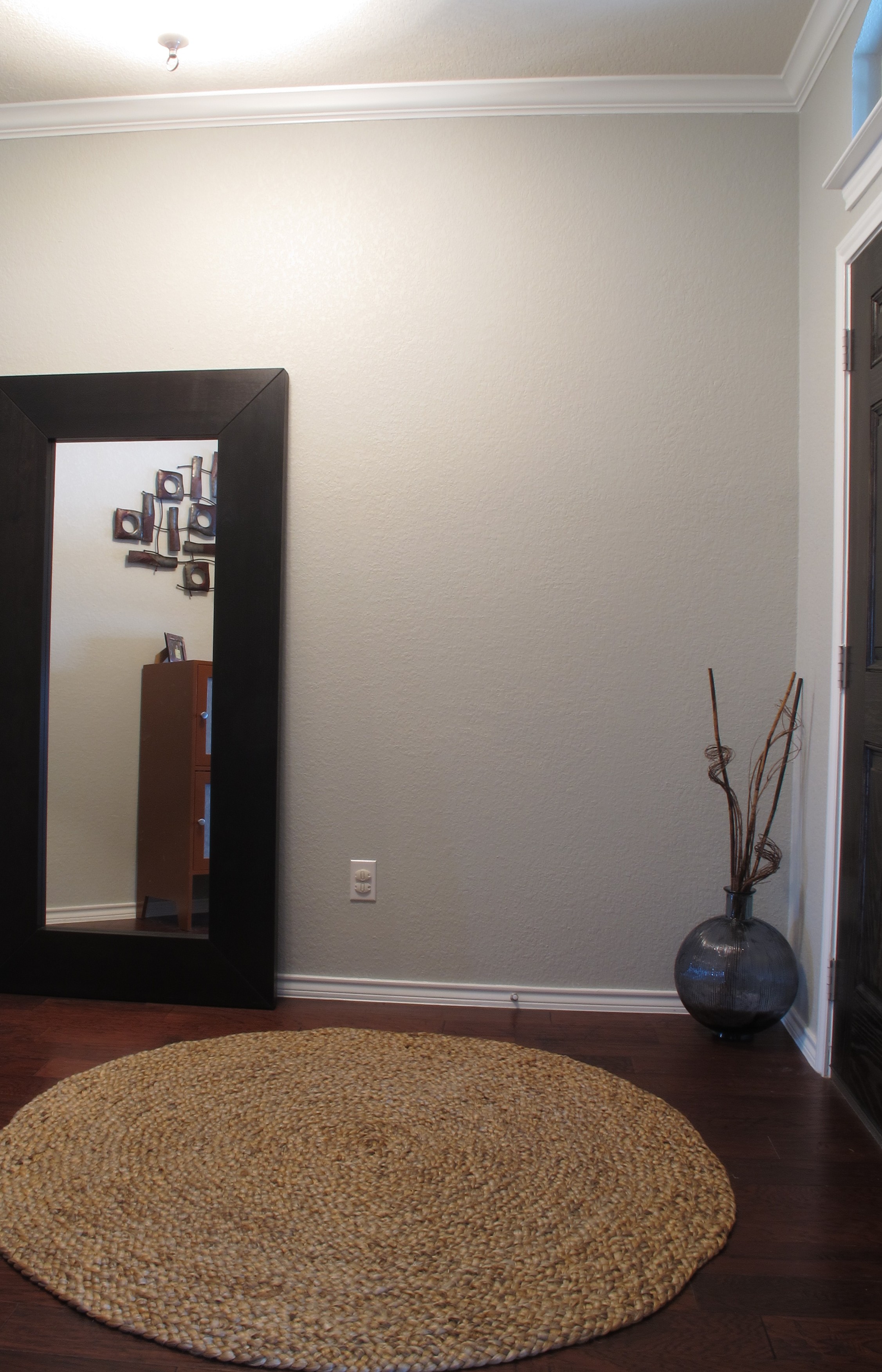 I’m not wasting any time after completing our bathroom makeover to get started on this gem.   It’s the area that sets the tone for our home as it’s the first spot that people see.  Yet I’ve never felt that it matched the feeling of the rest of the house.  In this planning post,  I mentioned that I was searching for a round jute rug for our foyer in, aaaaaaand…