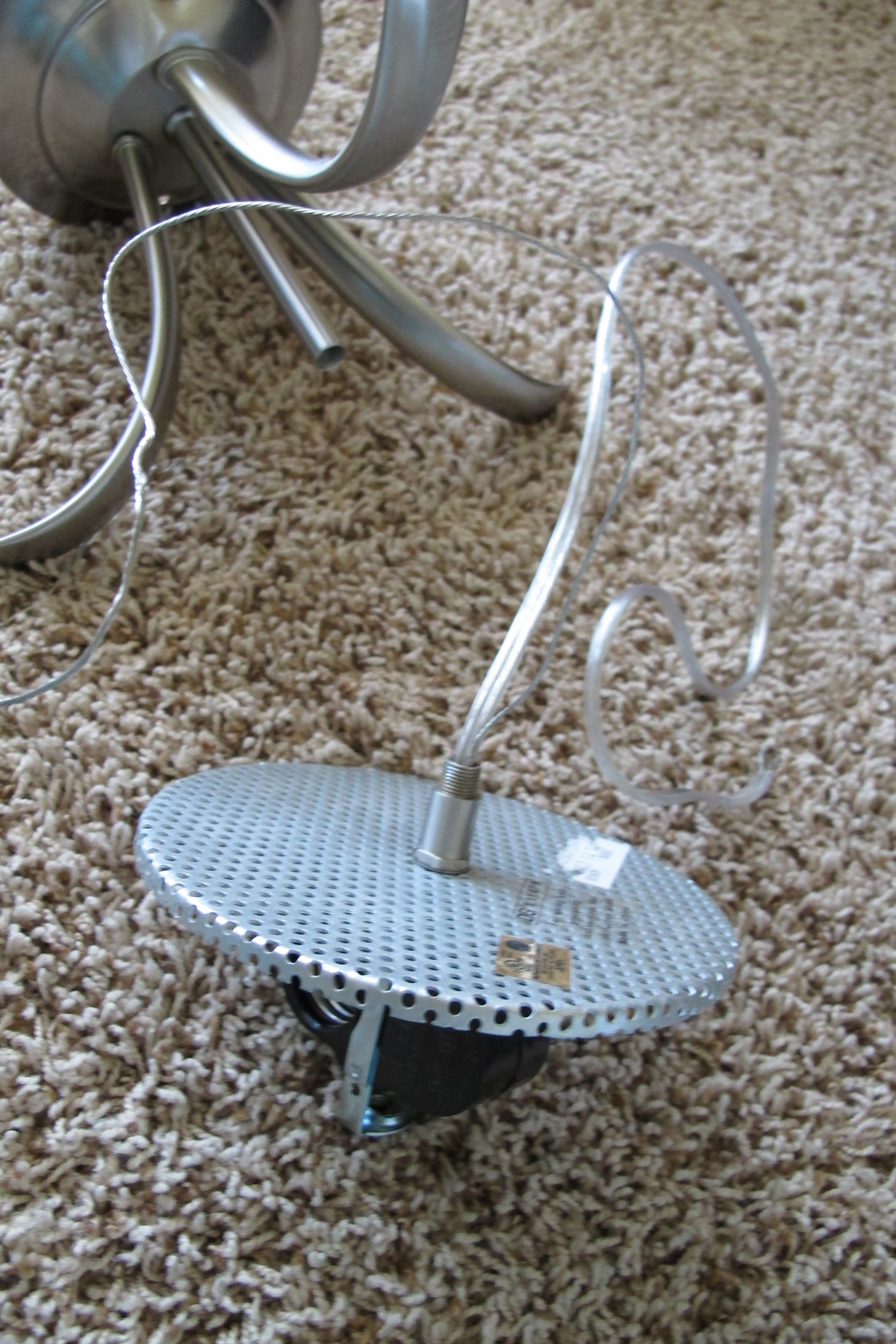 You can see that I removed the three arms leaving holes in the ceiling plate.   Joey assured me that we would not be invaded by rabid spiders in doing so.   I really hope that I believe him.