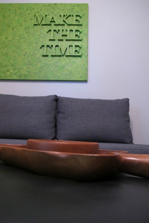 This painting is another piece of art created by my mother-in-law Mac.  It was displayed in the master bedroom of our last house. To create this piece, she glued foam letters onto the canvas, painted it green, then went crazy splatter painting it in other various tones of green.   So super cool.