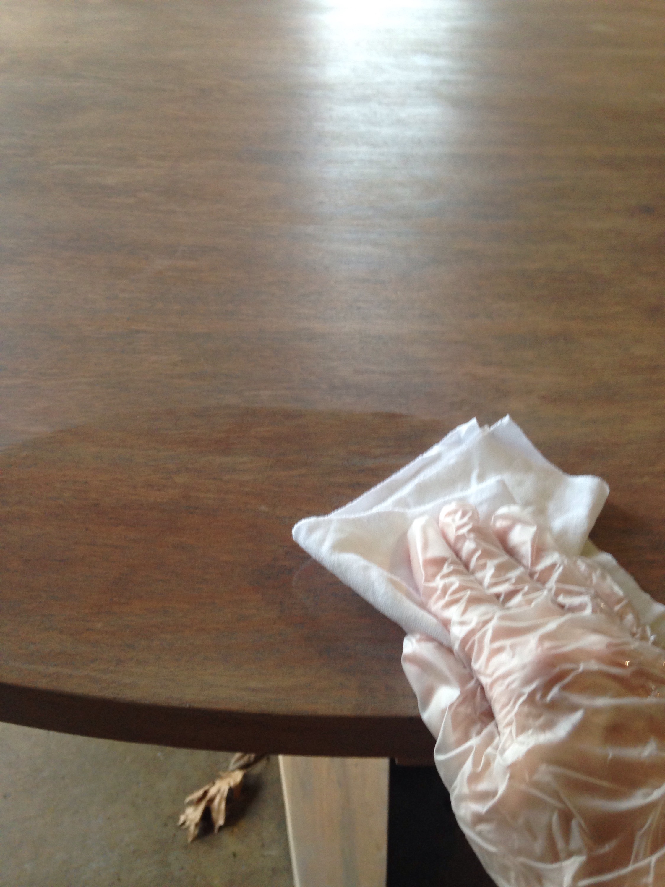 Step 5: I always end up having to do a light sanding with 220 grit sandpaper to really remove all the residue.   It doesn’t usually take long, but is wholly effective.