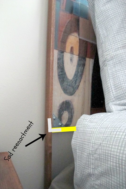Did I say “lastly” before? I lied.  Lastly, I would properly mount this puppy to the wall (or bedframe) rather than just set it back there.  No guest of mine will be awoken by a toppling headboard.  No siree.