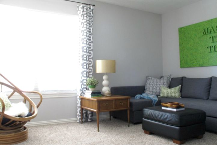 It’s been a loooooooong time since we last spoke about the hang-out room.   That’s really because nothing’s happened in there until recently.   If you’ll recall, I left off when I hung our shower-curtains-turned-curtains.  Waste not, want not, right??  And nobody ever catches on that they’re actually hung with shower curtain rings.  That’s totally my definition of success right there. šŸ™‚