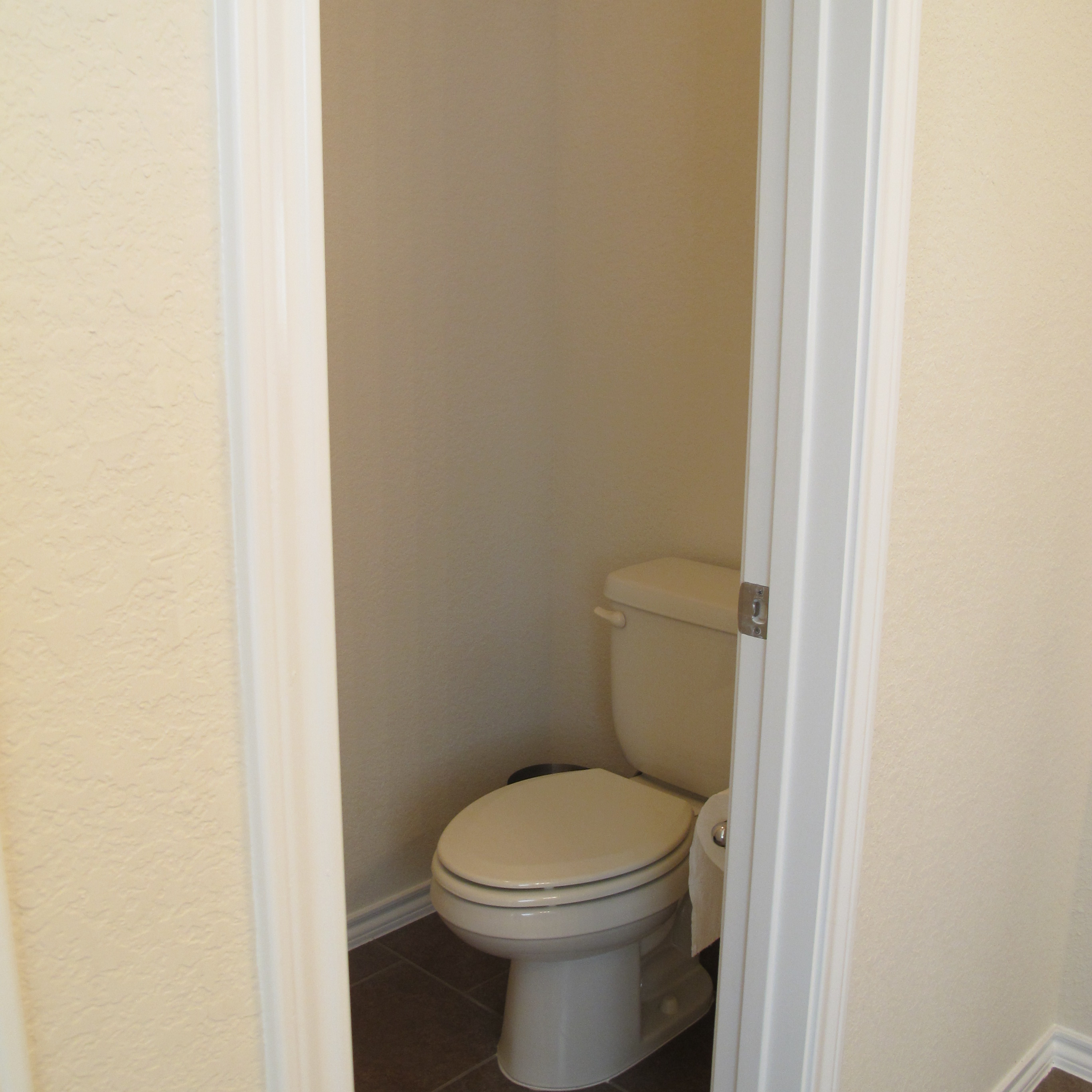 After: Master toilet room (After painting, we added some custom DIY shelves for storage and style.)…
