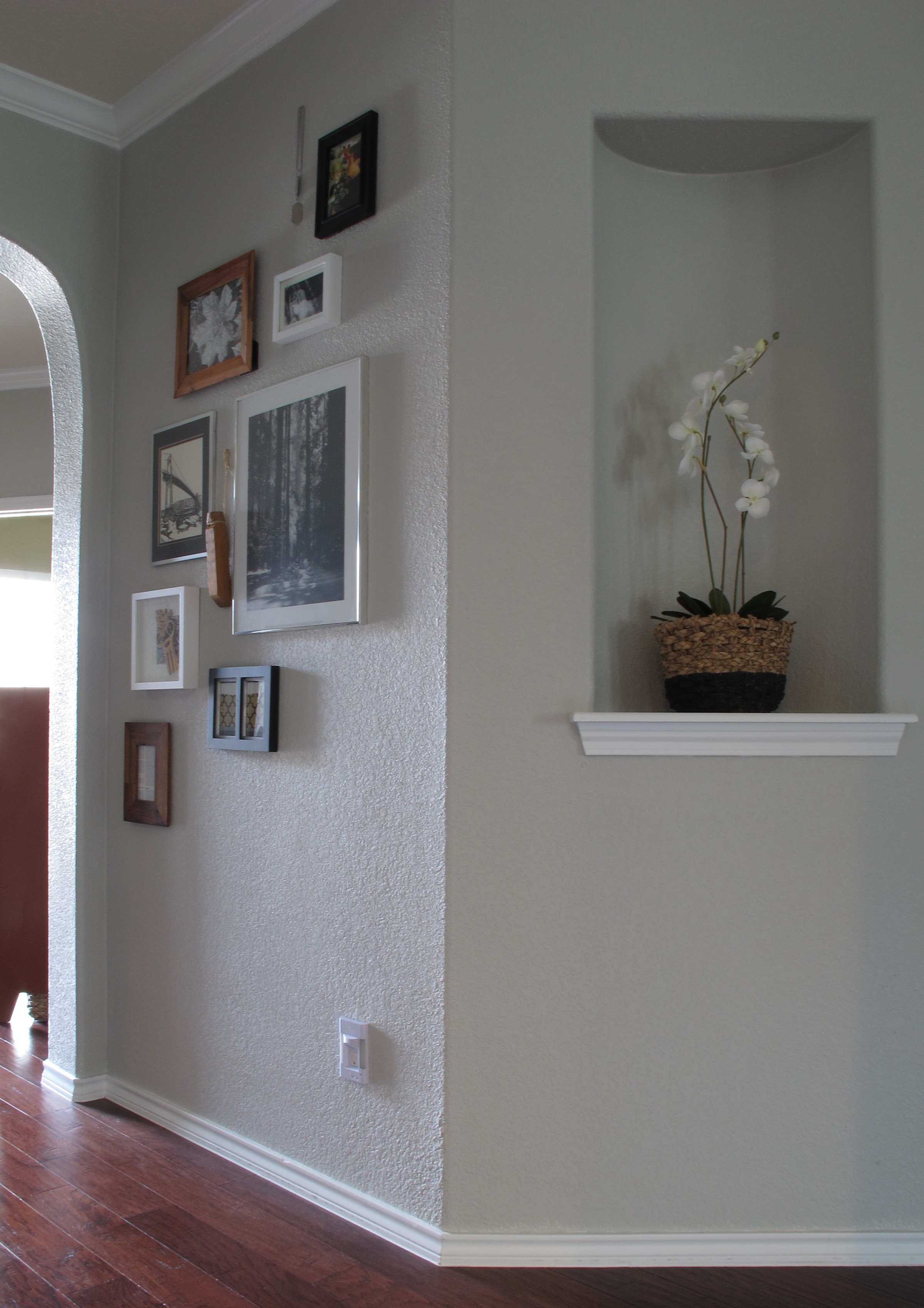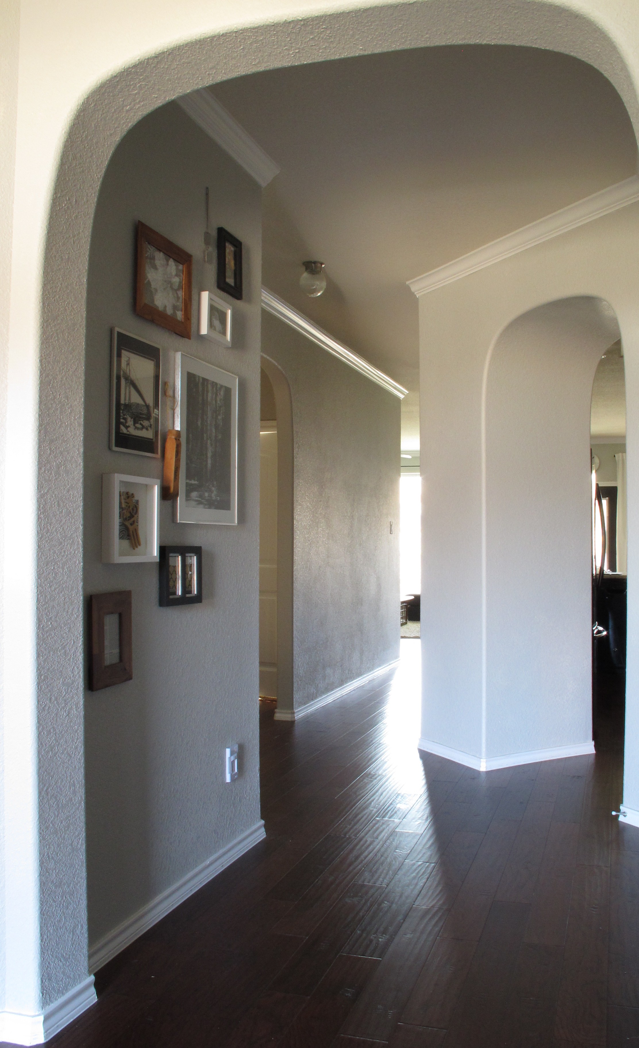 That blank hallway wall shown two pics above, ultimately looked like this thanks to a simple art hanger project