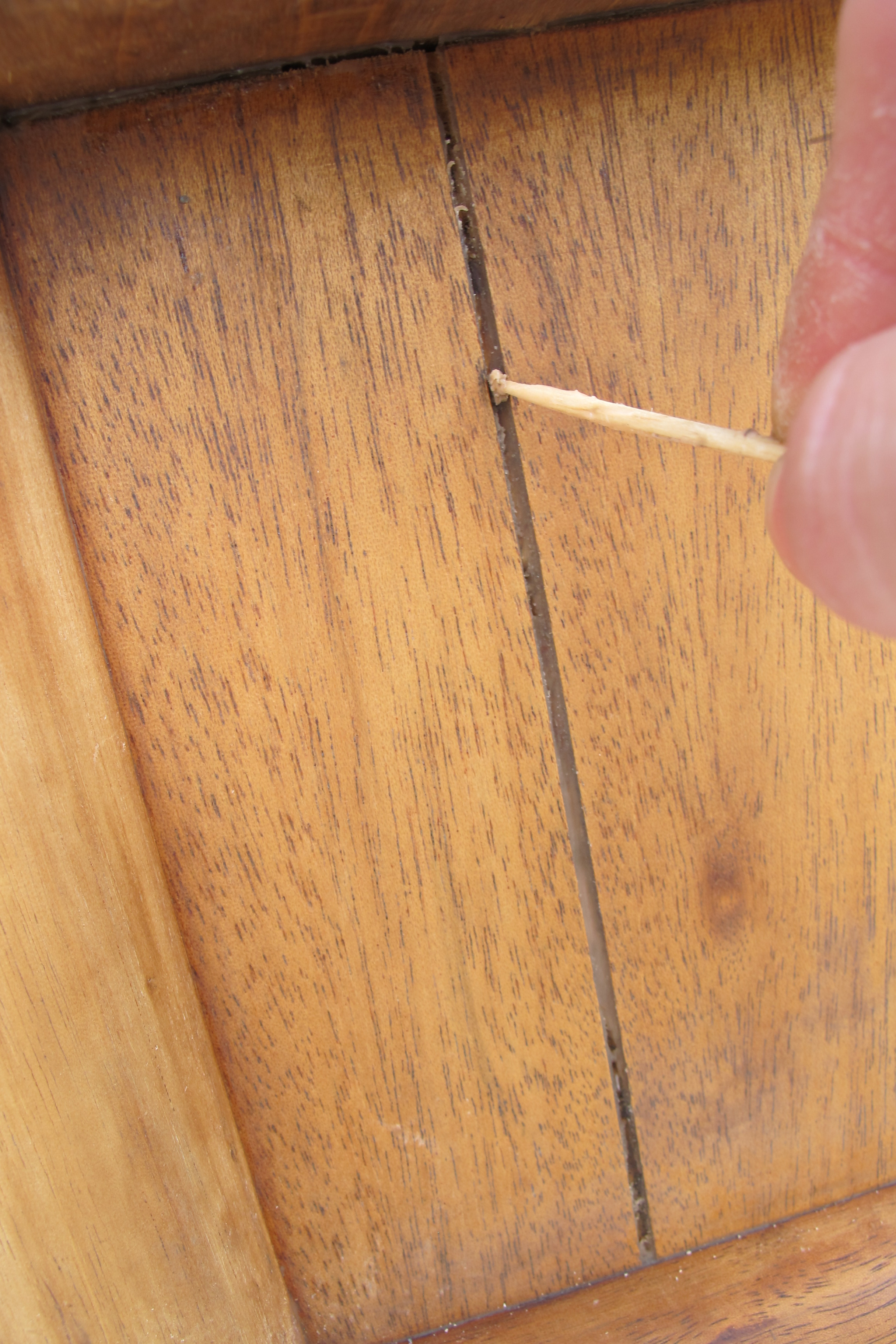 Step 3: The most satisfying step. Scraping. Use a plastic scraper and scrape in the direction of the wood grain to remove all that grody finish…..