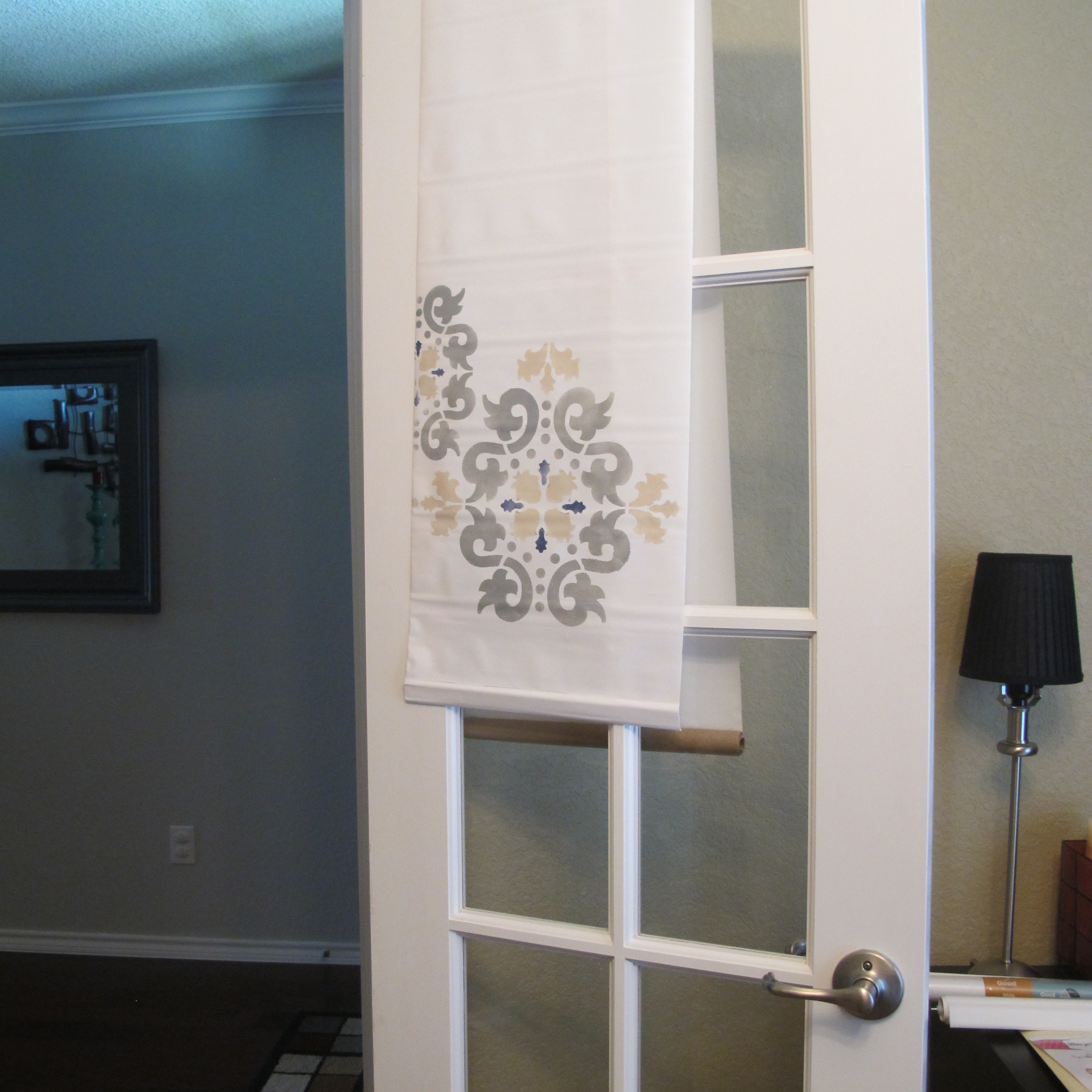 Next, I wanted to add a little interest. I’d purchased a stencil from Hobby Lobby for my roller shade project, but aside from this one little test stencil, I didn’t end up using it….