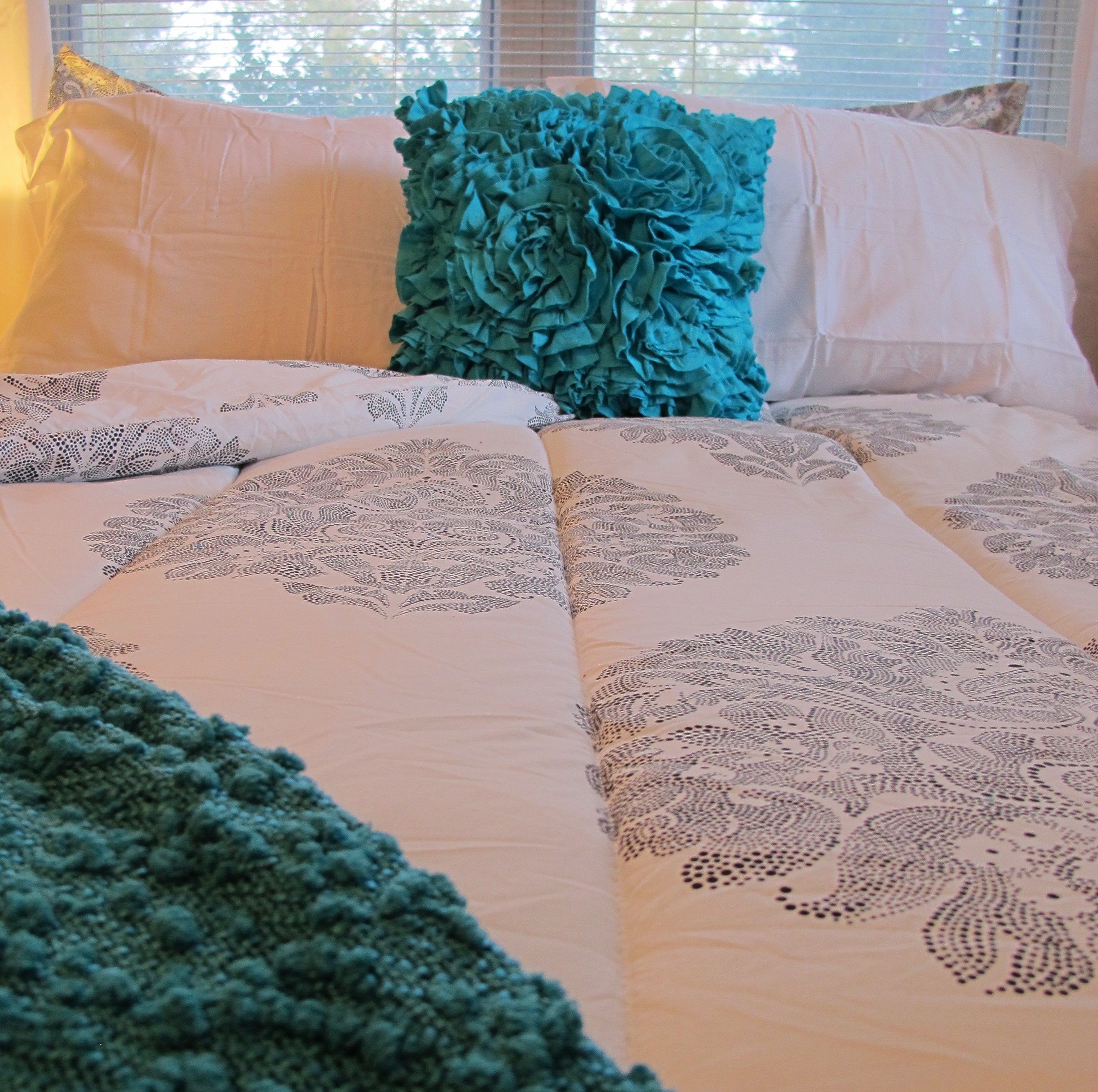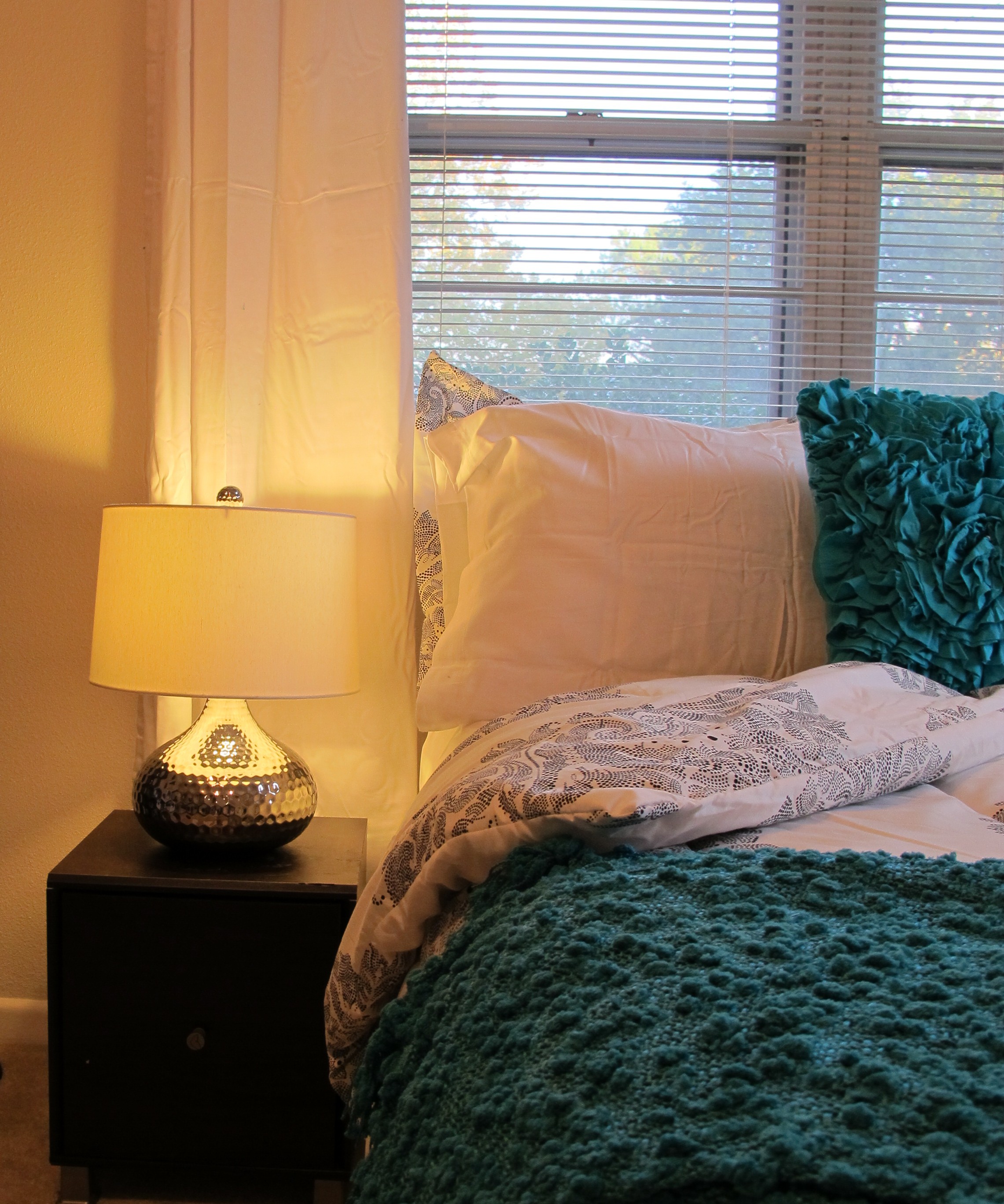 We’d changed out the light carpet for ebony laminate, and basically plopped down our stuff on moving day. A good start for sure, but the room needed a large dose of softening. STAT. I’d discussed my plan for the space in this post, which was as follows…