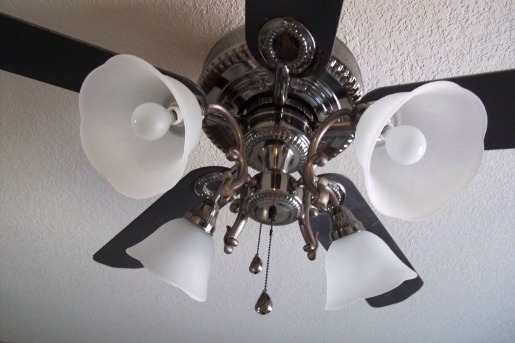 … to replace the ridiculously ornate (for our taste) ceiling fan in our master bedroom.  Ya know… the one with the badly painted blades, which to this day contain pieces of the previous owners hair (I’m not touching it! Ew.) ..