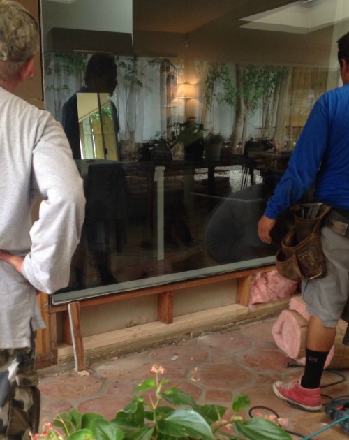 Once they got going, things got a little nerve-wracking when we discovered that our window was actually not a legit window. It was a huge piece of dual paned tempered glass that had been framed in. And once they removed the trim we saw that hardly anything was holding it In place. Our framer suspected that it was a DIY job based on what he saw.