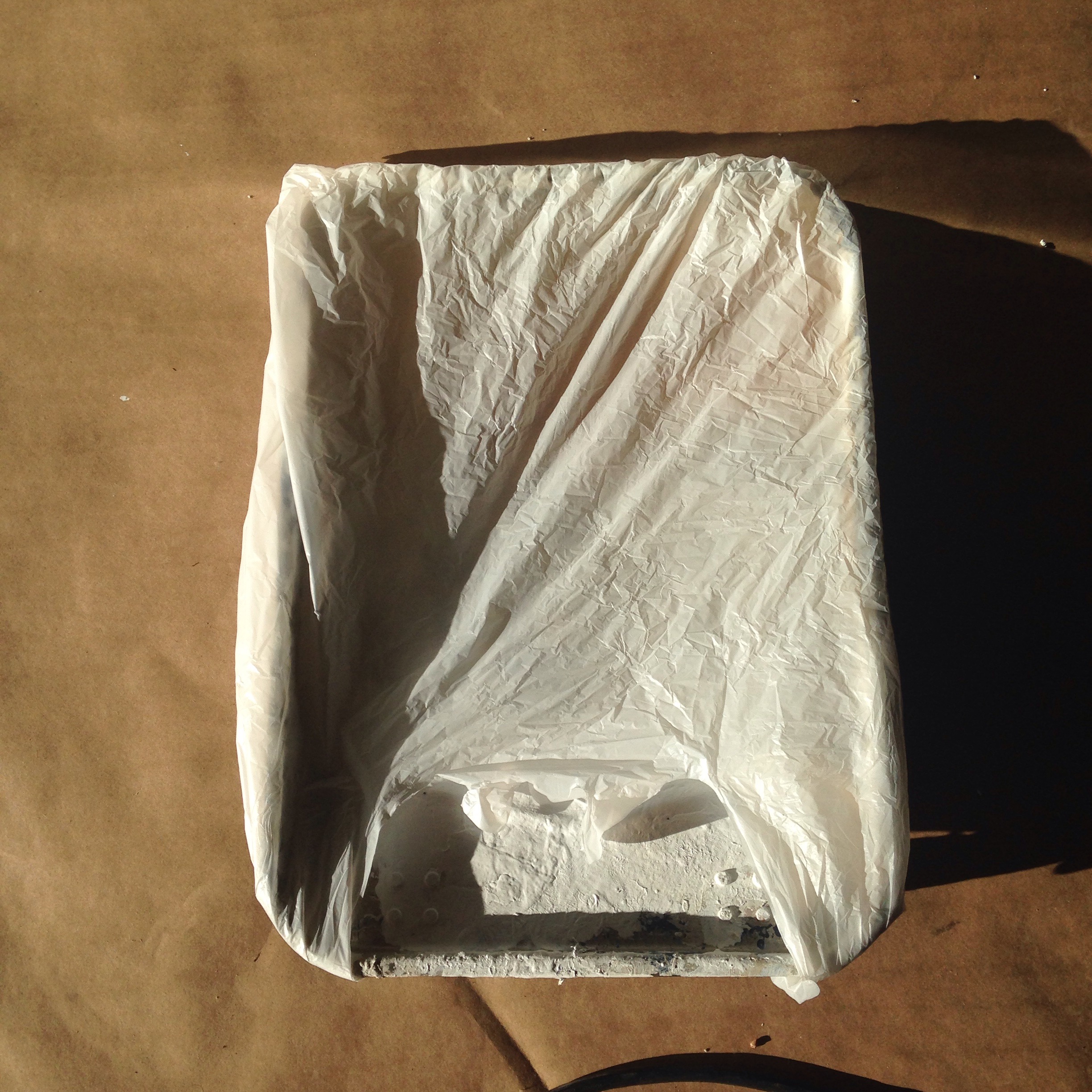 Line your tray with a plastic shopping bag to save on clean up. I wrap the handles around the legs of the tray to keep it from slipping…