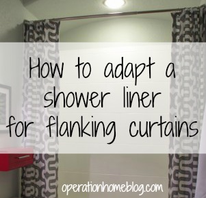 I still have to buy an extra long shower curtain liner. I thought that I’d be able to make do with the liner we had, but it was too short. So, really, my curtains aren’t functional yet, but they will be soon. Woo-hoo!