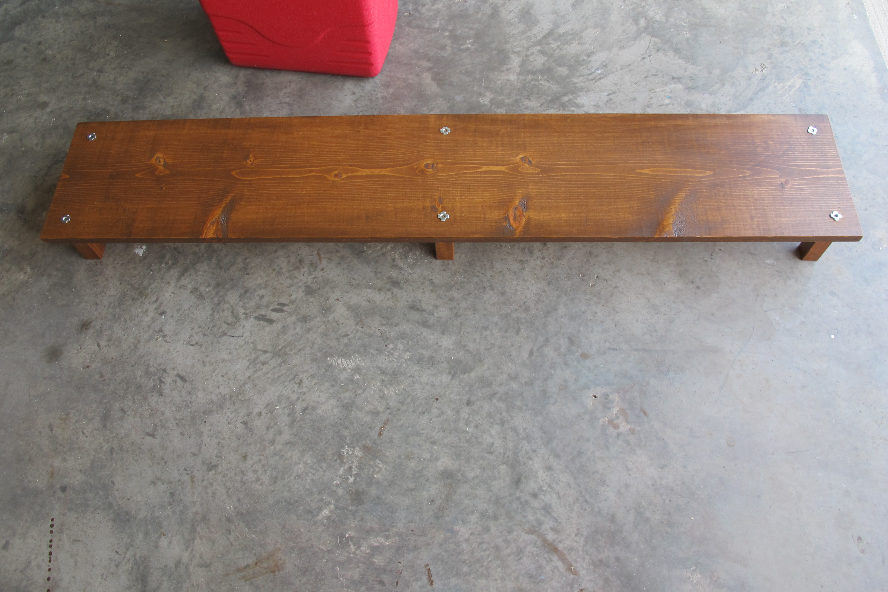 After painting the walls, I sanded and restained the shelf I built with Varathane’s Early American stain to match the wood tones throughout the rest of the house, and then I decorated it more simply with practicality in mind. TP = necessary. A simple faux rosemary (from Target) and white plate (to hold jewelry and such while swimming) completed the look.